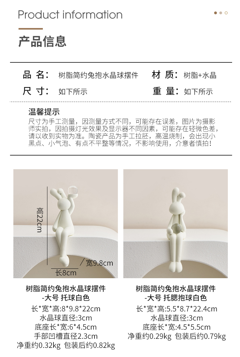 • 수정 구슬 장식을 들고 수지 간단한 토끼-공을 들고 큰 두 다리 화이트