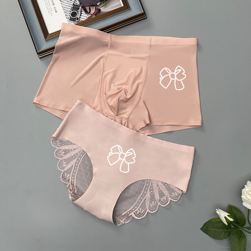 아이스 실크 커플 속옷 한 남자와 한 여자 순수 섹시 레이스 성격 귀여운 순면 가랑이 속옷 세트 여름 얇은스토어 가기