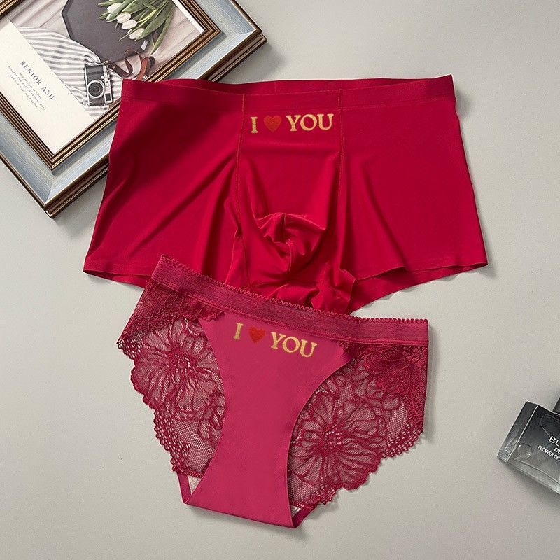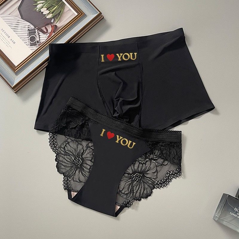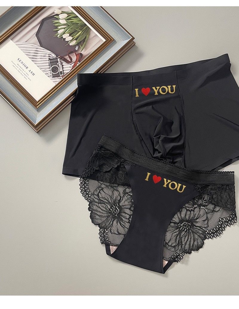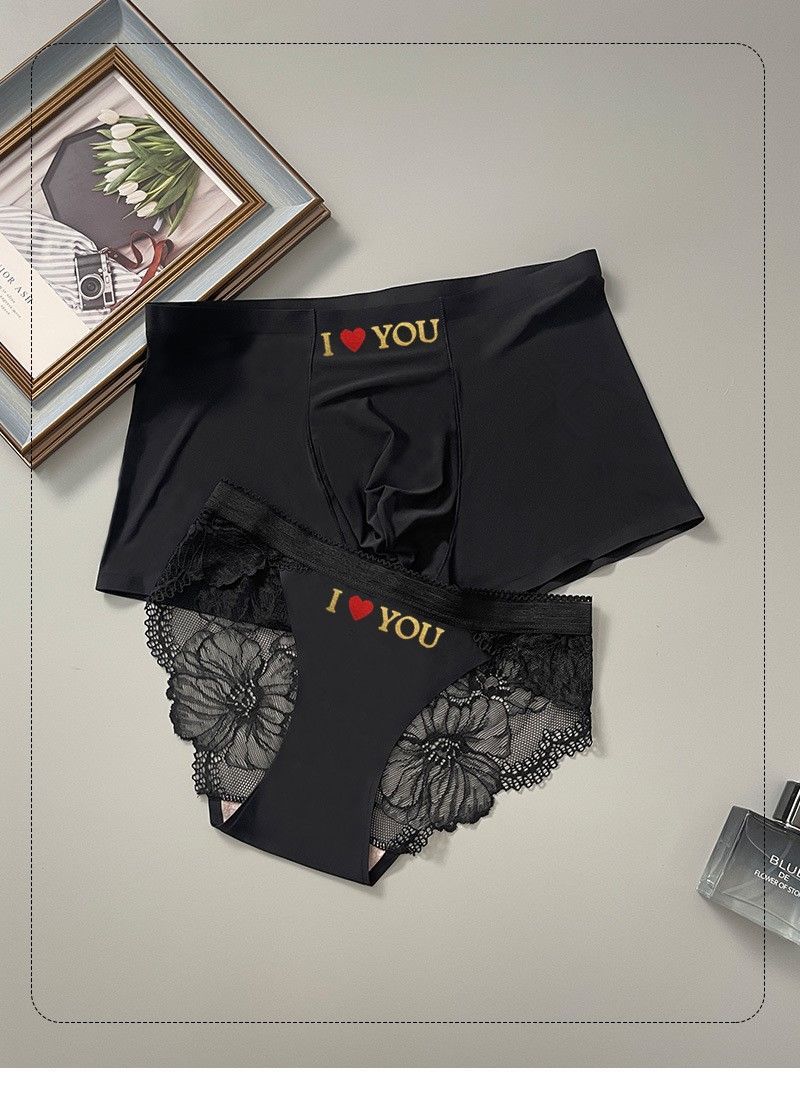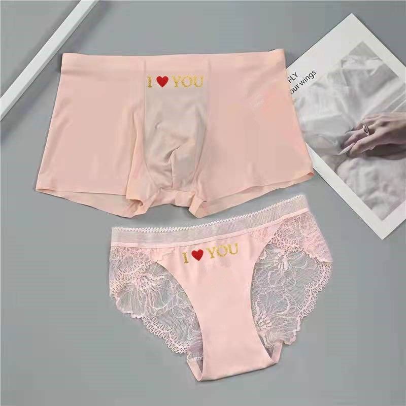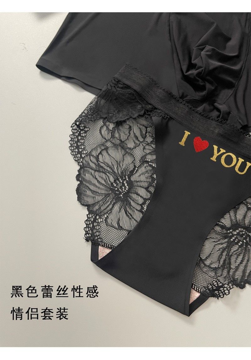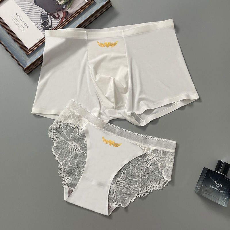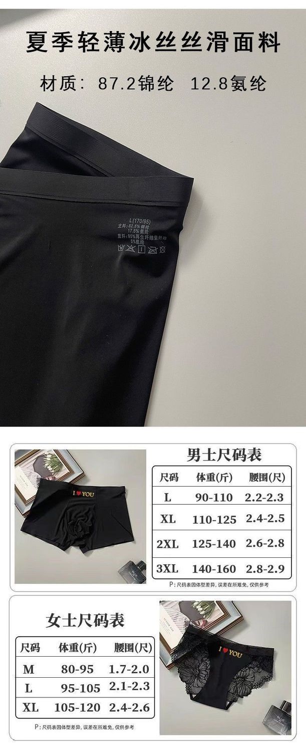 커플 속옷 남자와 여자의 아이스 실크 원활한 복서 바지 로맨틱 패턴 연인 여름 레이스 2 조각스토어 가기