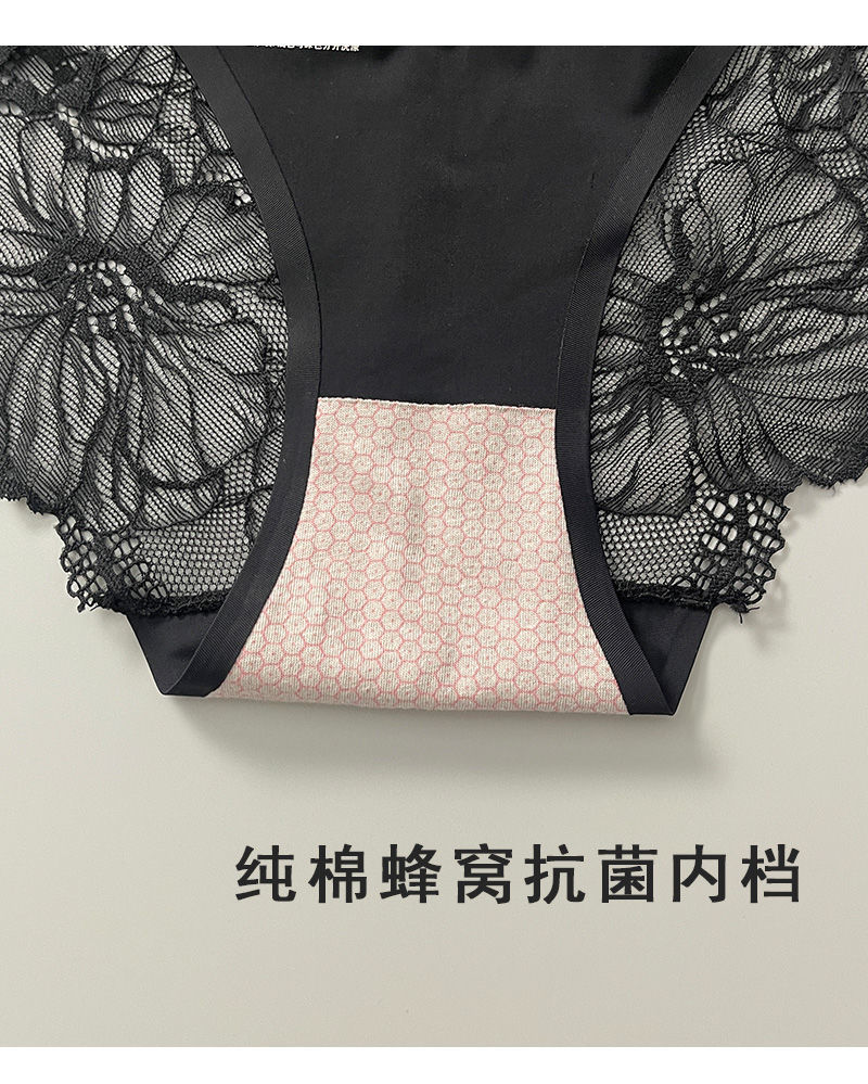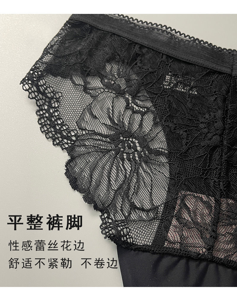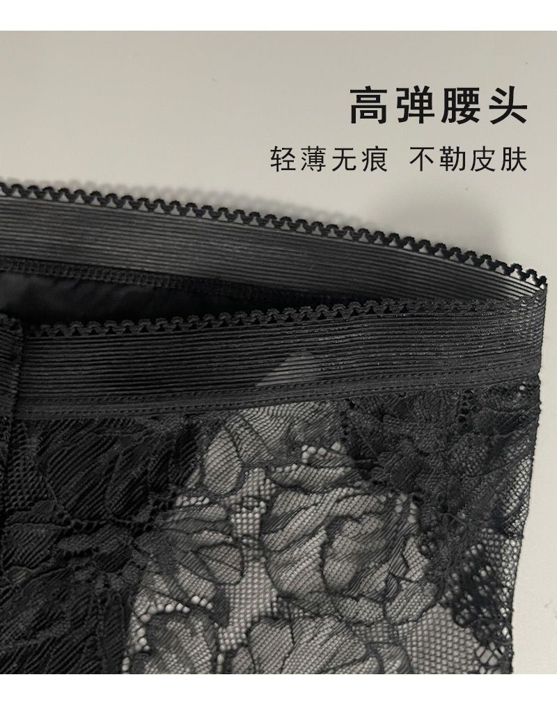커플 속옷 남자와 여자의 아이스 실크 원활한 복서 바지 로맨틱 패턴 연인 여름 레이스 2 조각