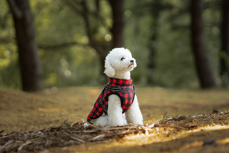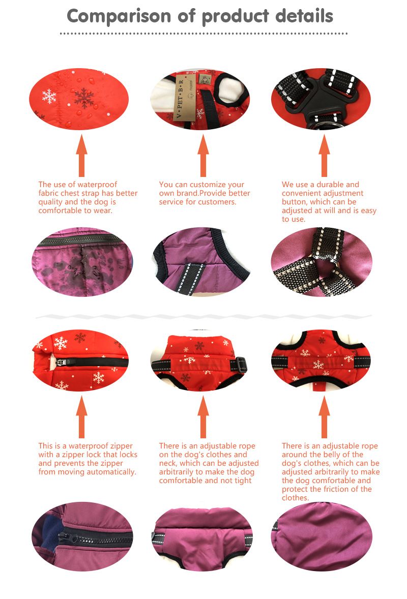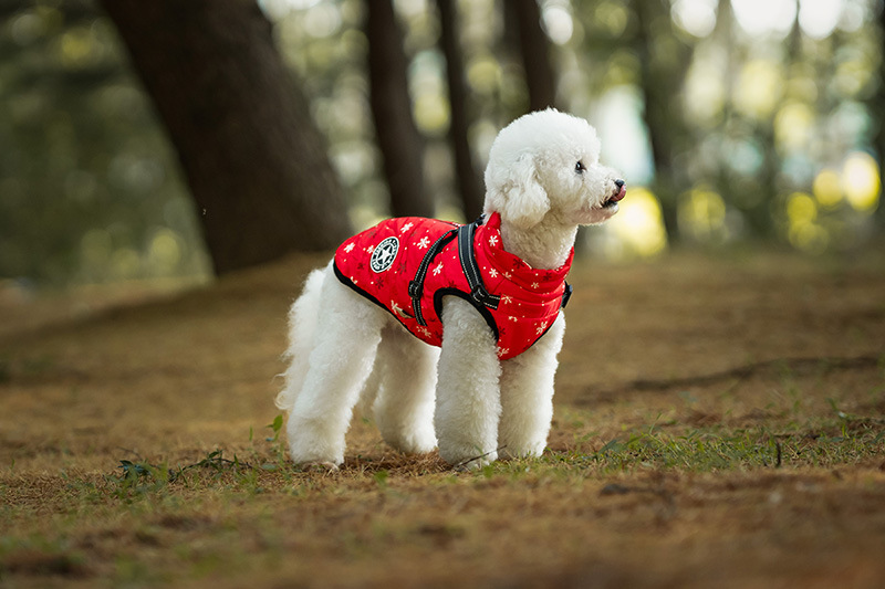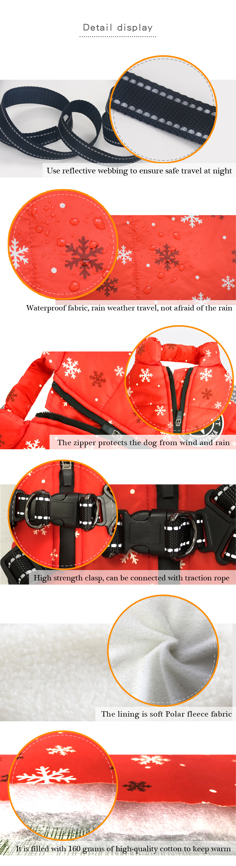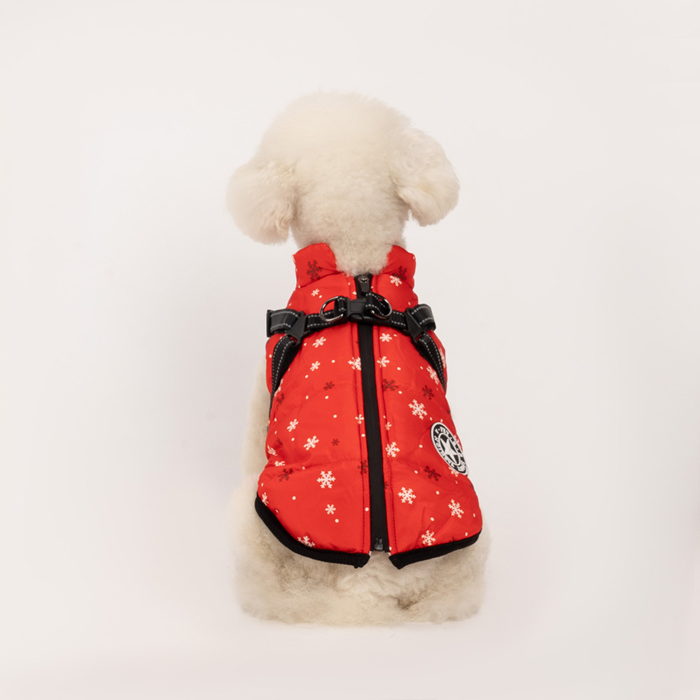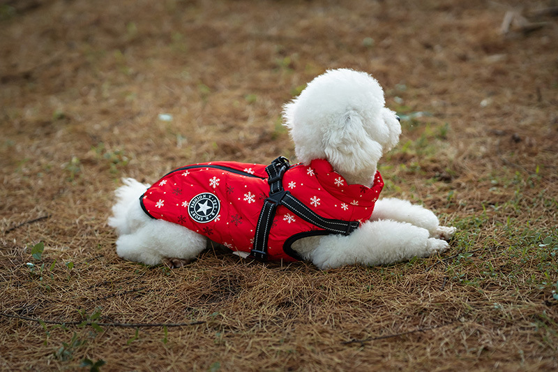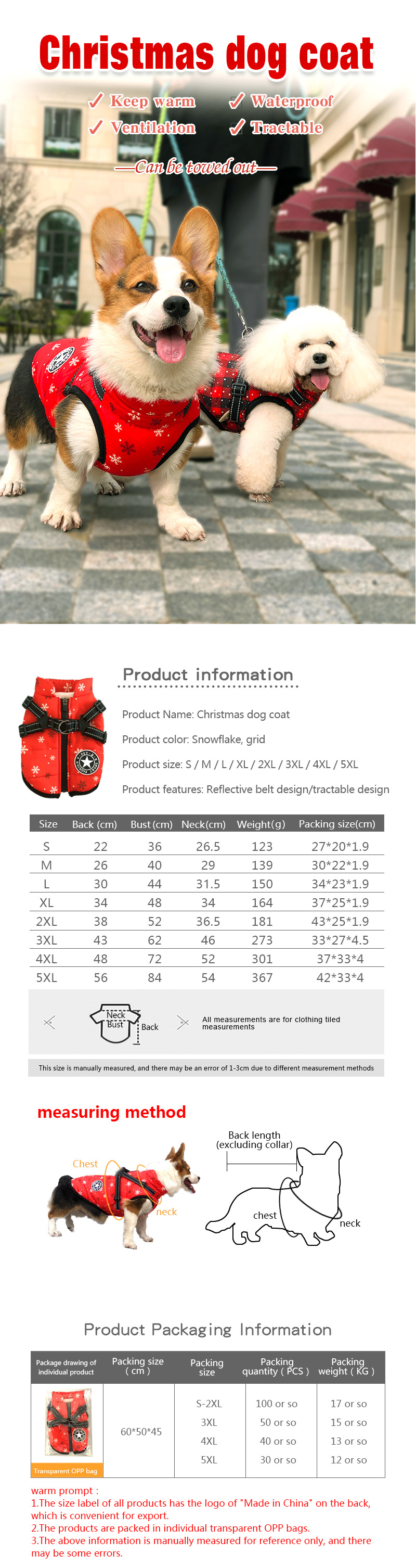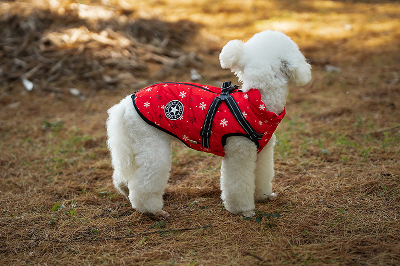 국경 붉은 크리스마스 개 옷 따뜻한 애완 동물 의류 방수 반사 벨트 가슴 뒷면 옷 도매