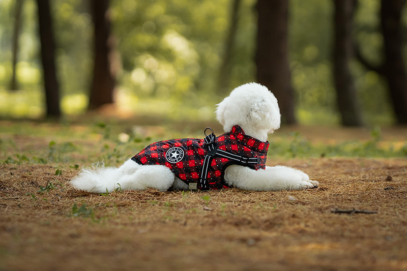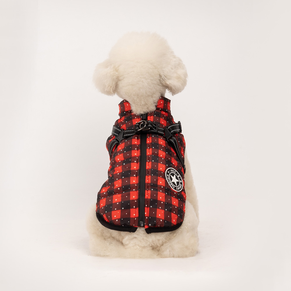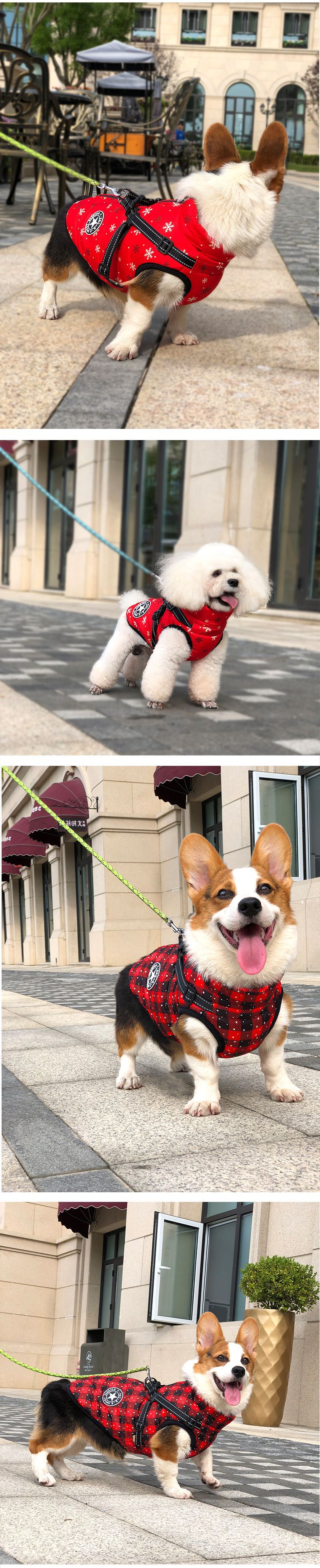 국경 붉은 크리스마스 개 옷 따뜻한 애완 동물 의류 방수 반사 벨트 가슴 뒷면 옷 도매스토어 가기