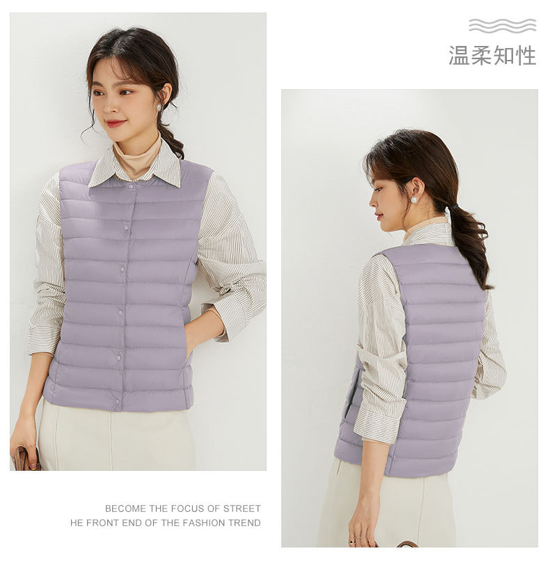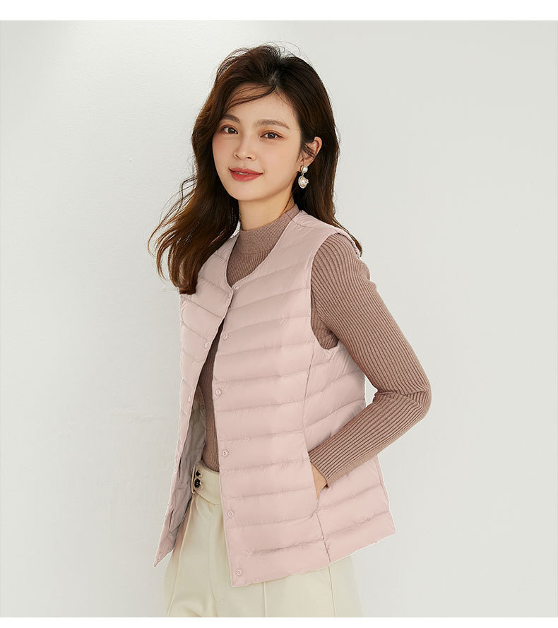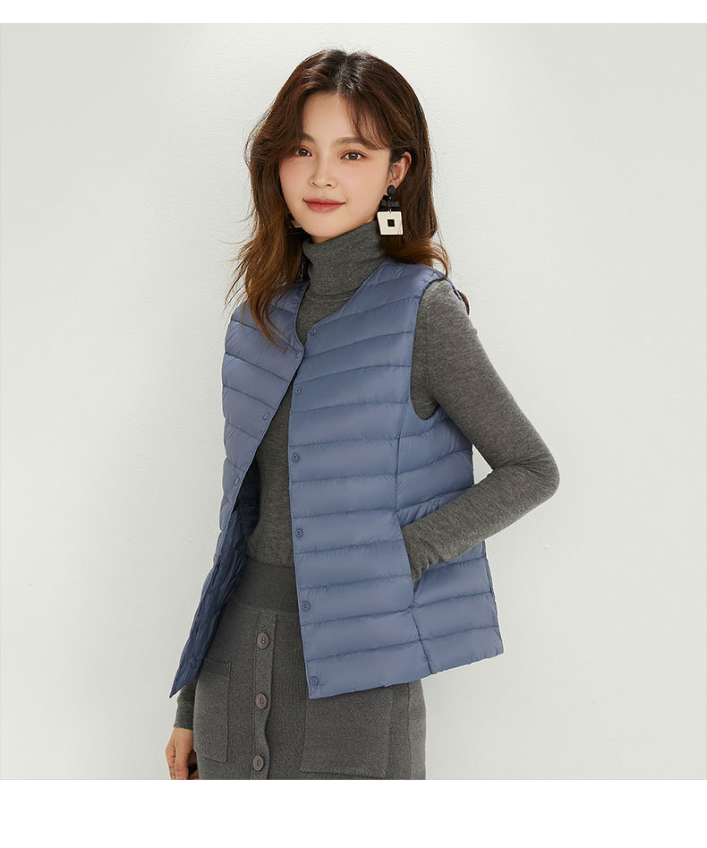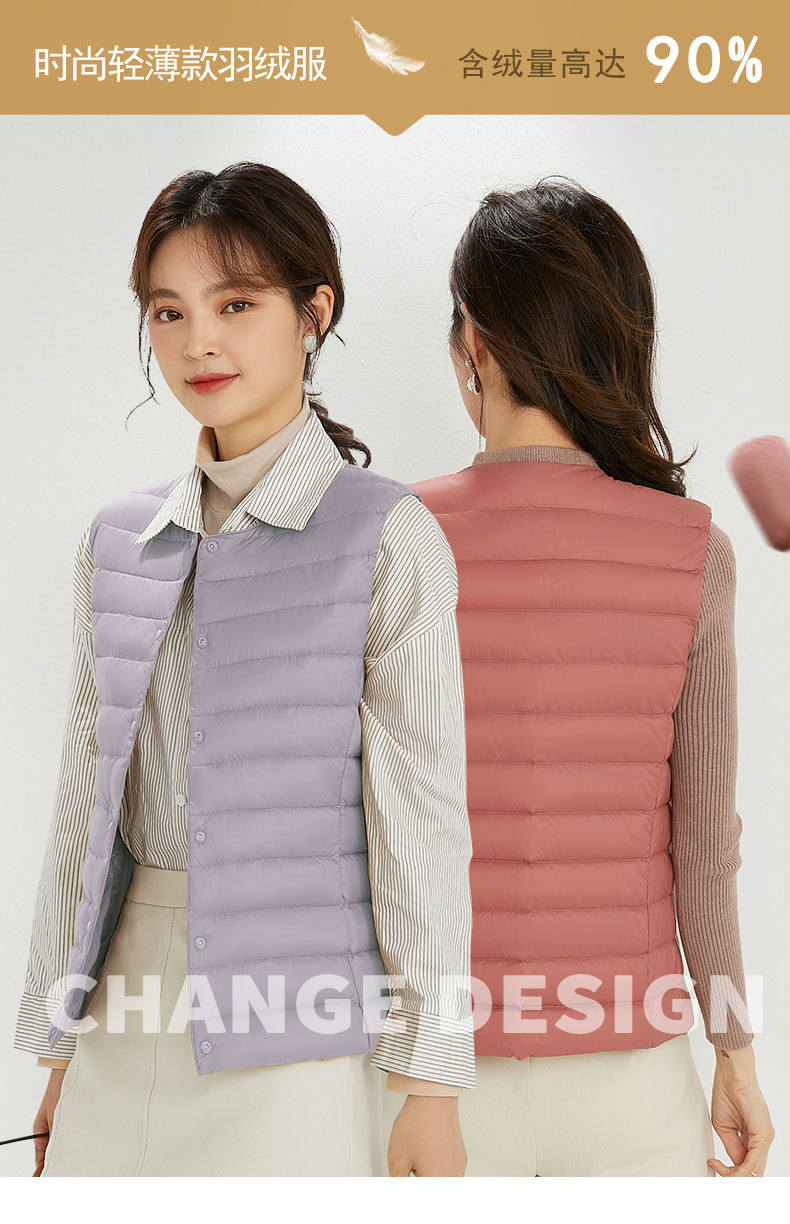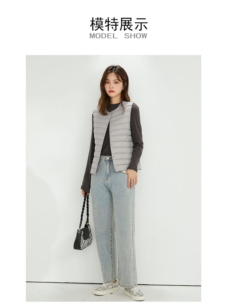 90 벨벳 여성 라이너 양복 조끼 조끼 라이트 다운 재킷 여성 Pinghu 도매 라운드 넥 대형 얇은 경량 겨울 재킷스토어 가기