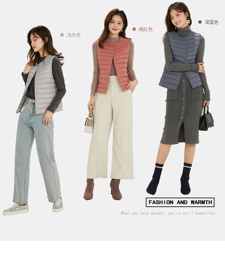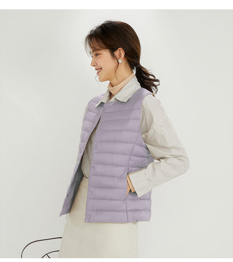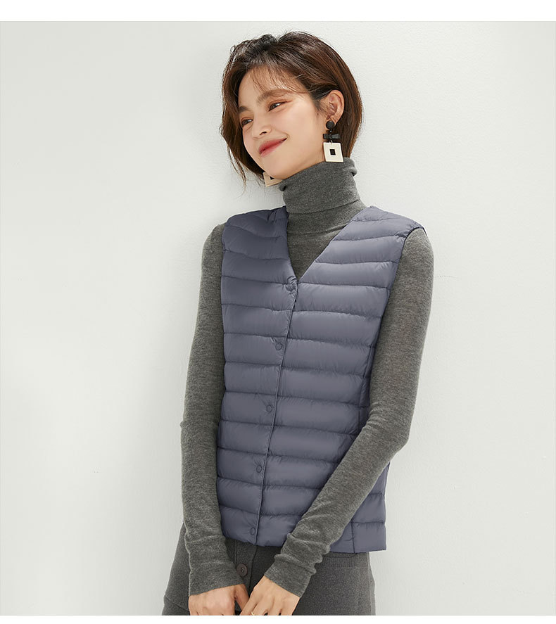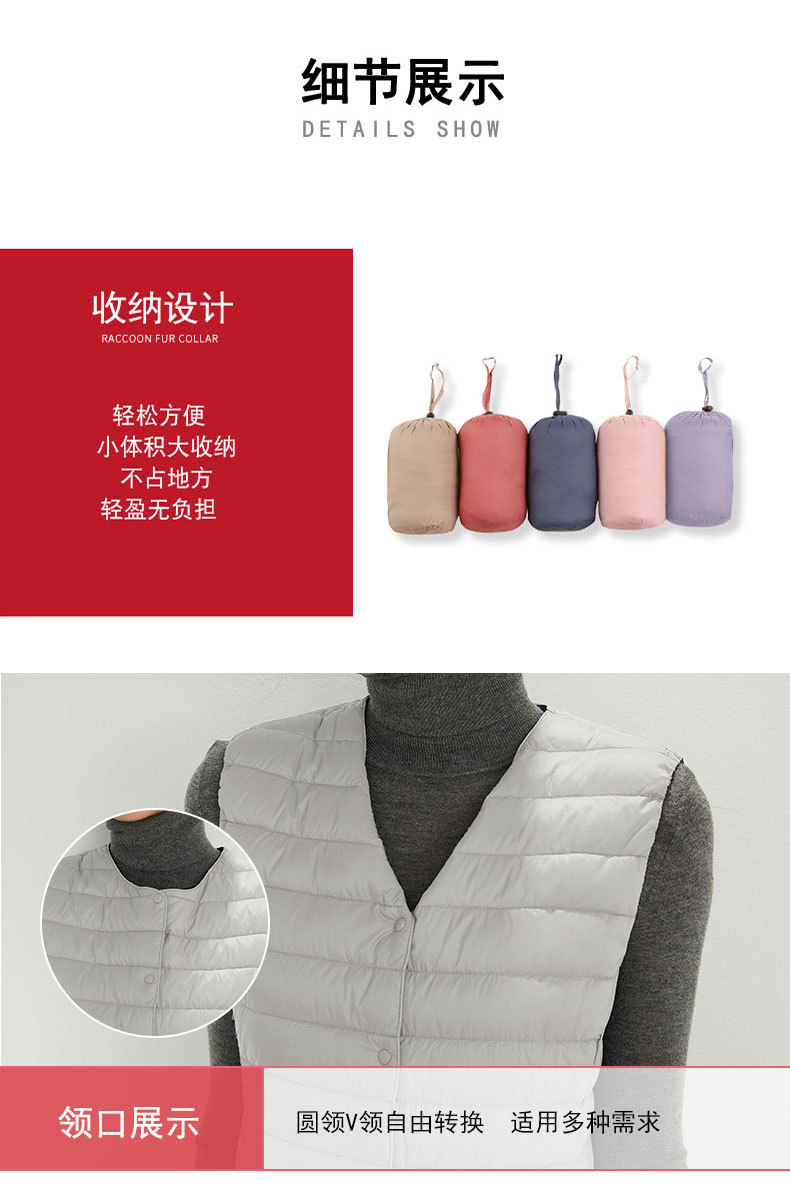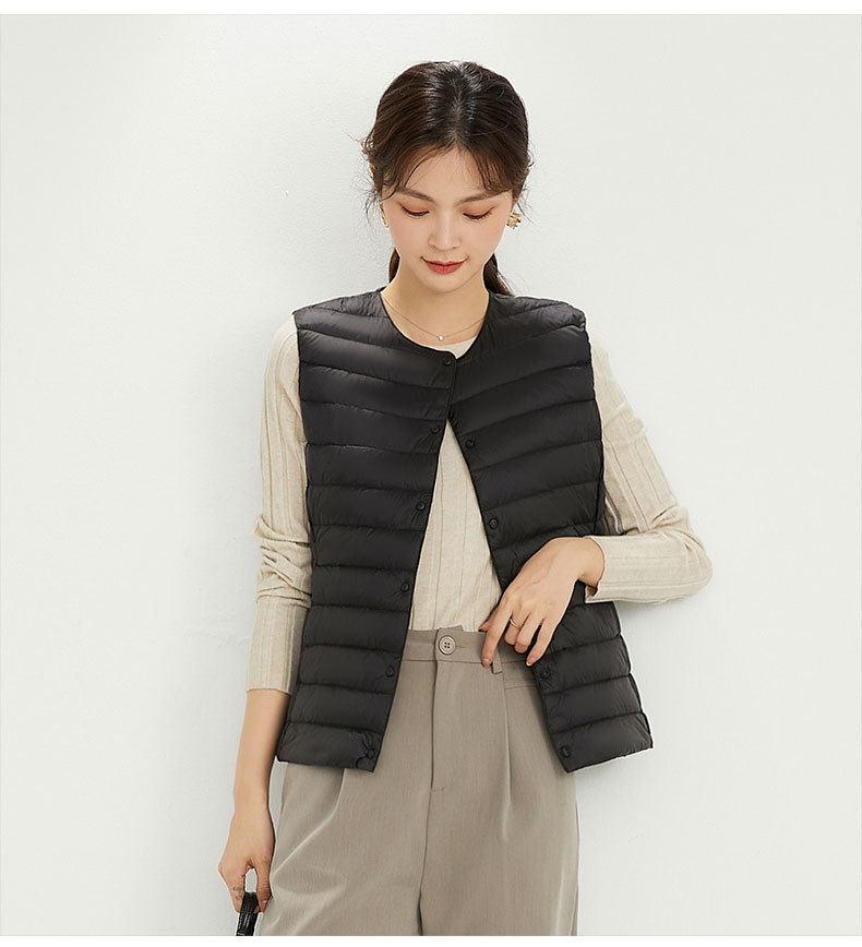 90 벨벳 여성 라이너 양복 조끼 조끼 라이트 다운 재킷 여성 Pinghu 도매 라운드 넥 대형 얇은 경량 겨울 재킷스토어 가기