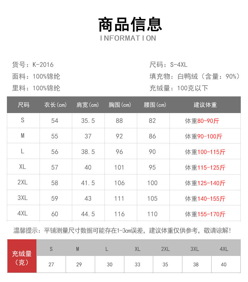 2、高端新国标绒子含量90%的轻型羽绒服。