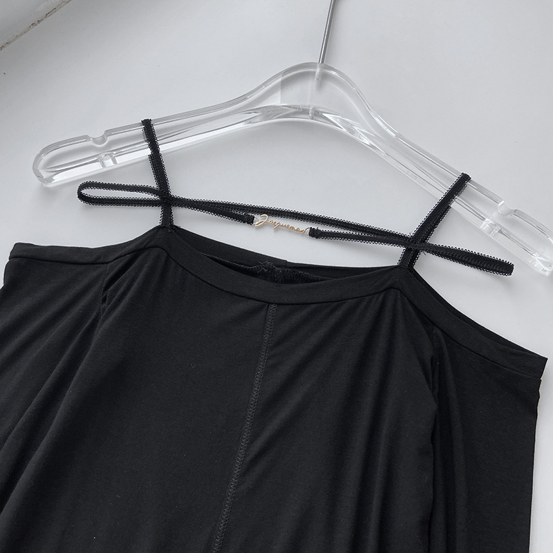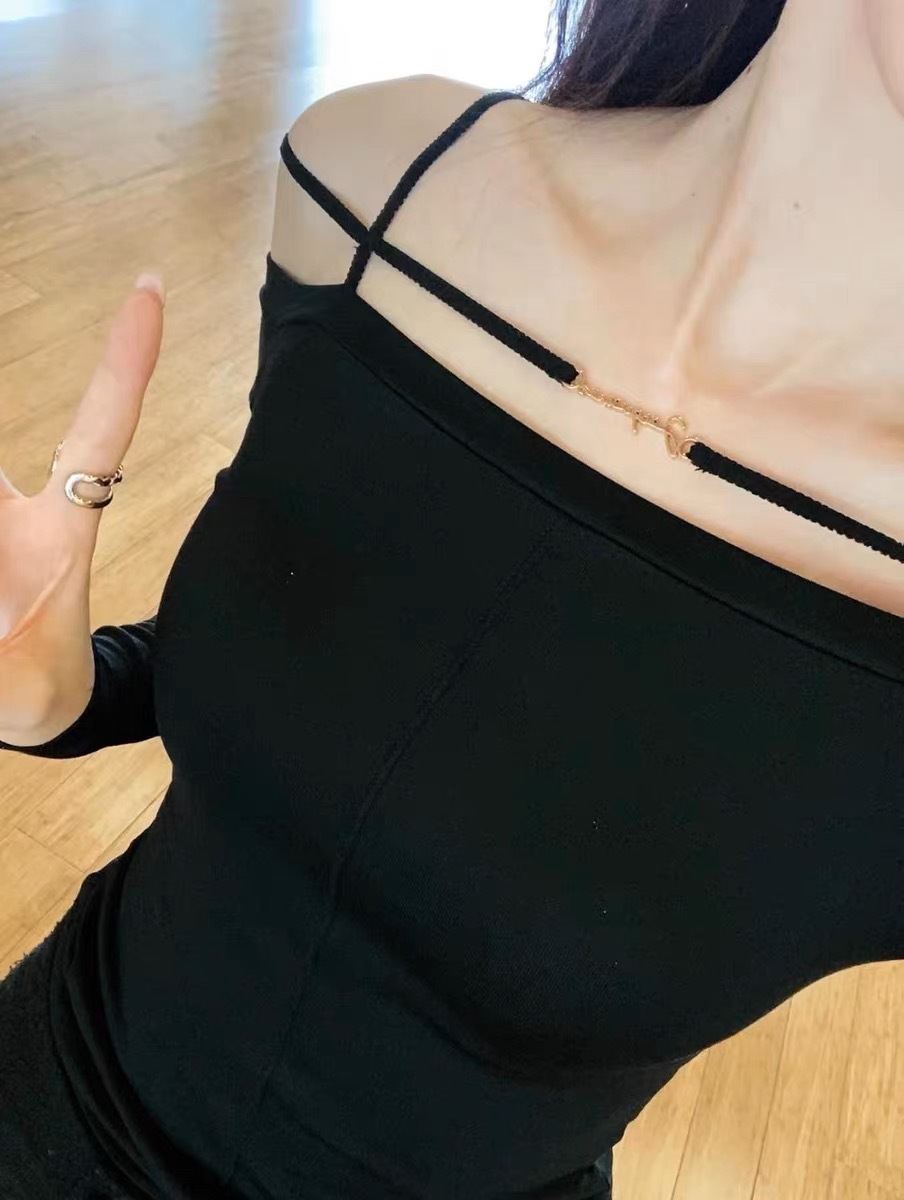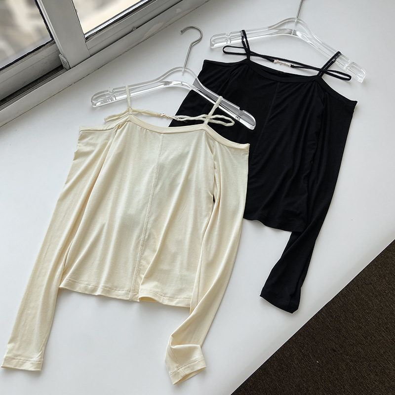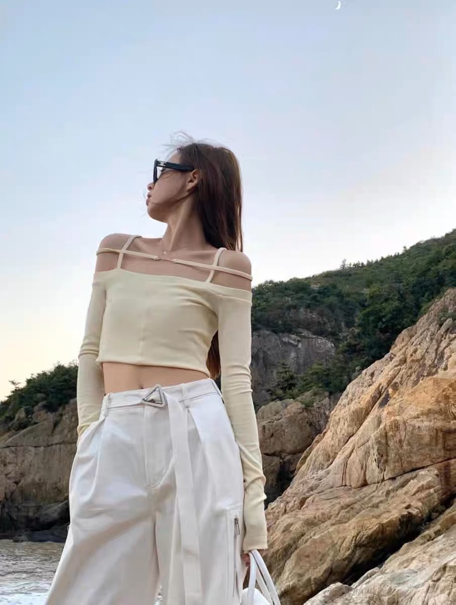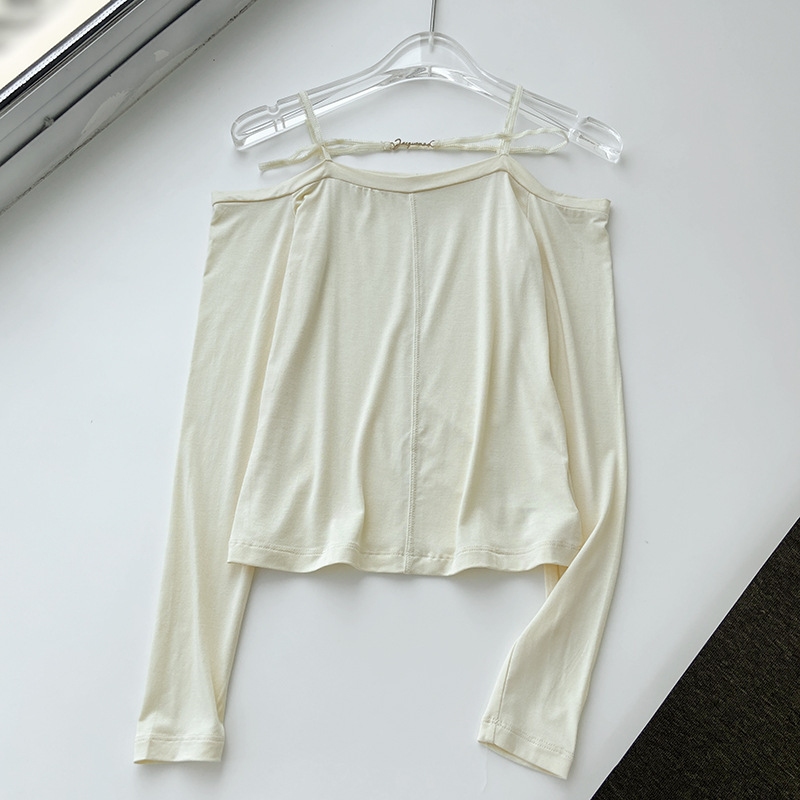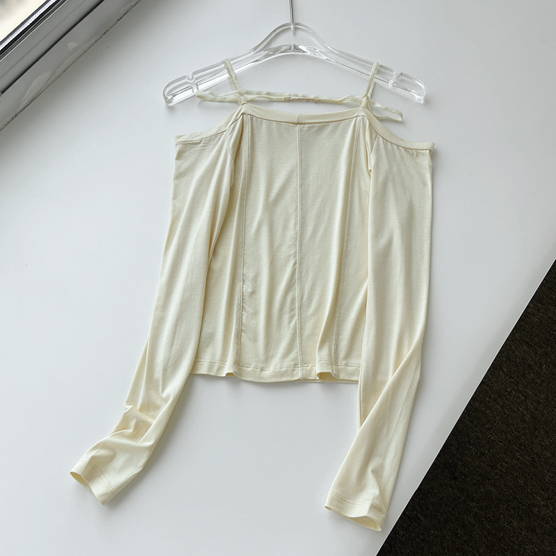 2023 봄과 가을 새로운 노란색 오프 숄더 오프 숄더 탑 여성용 같은 디자인 감각 순수 슬림 긴팔 T