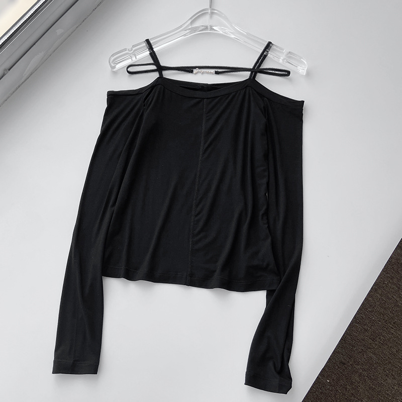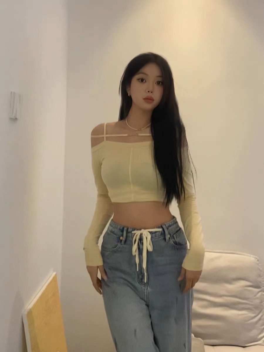 2023 봄과 가을 새로운 노란색 오프 숄더 오프 숄더 탑 여성용 같은 디자인 감각 순수 슬림 긴팔 T스토어 가기