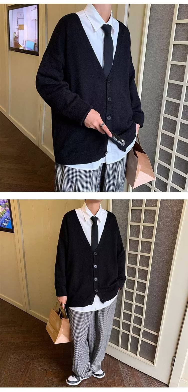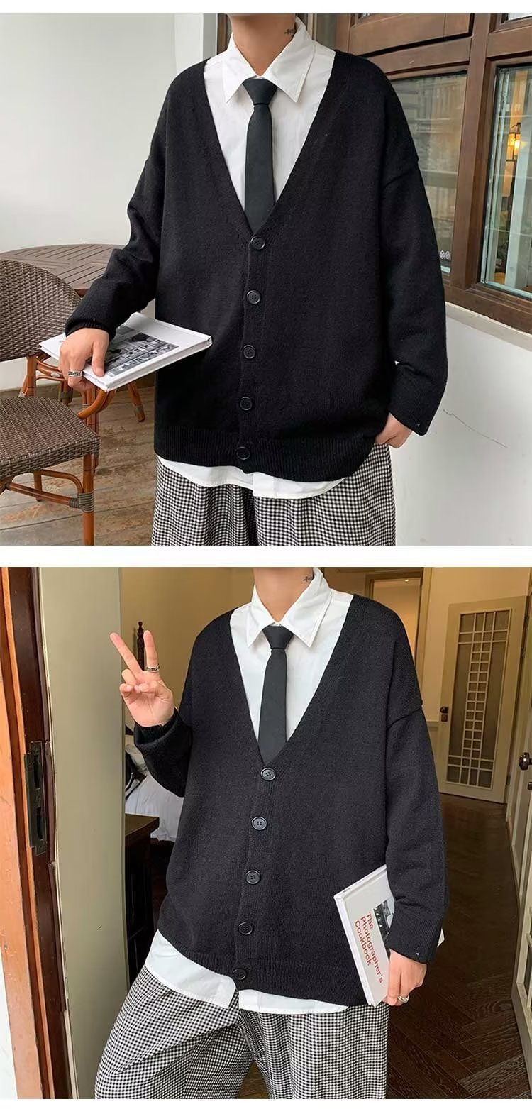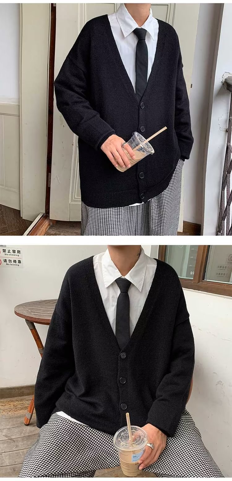 가디건 스웨터 남자의 가을 한국식 유행 느슨한 단색 아카데미 스타일 니트 스웨터 인스 타 그램 인기 브랜드 재킷 남성복스토어 가기