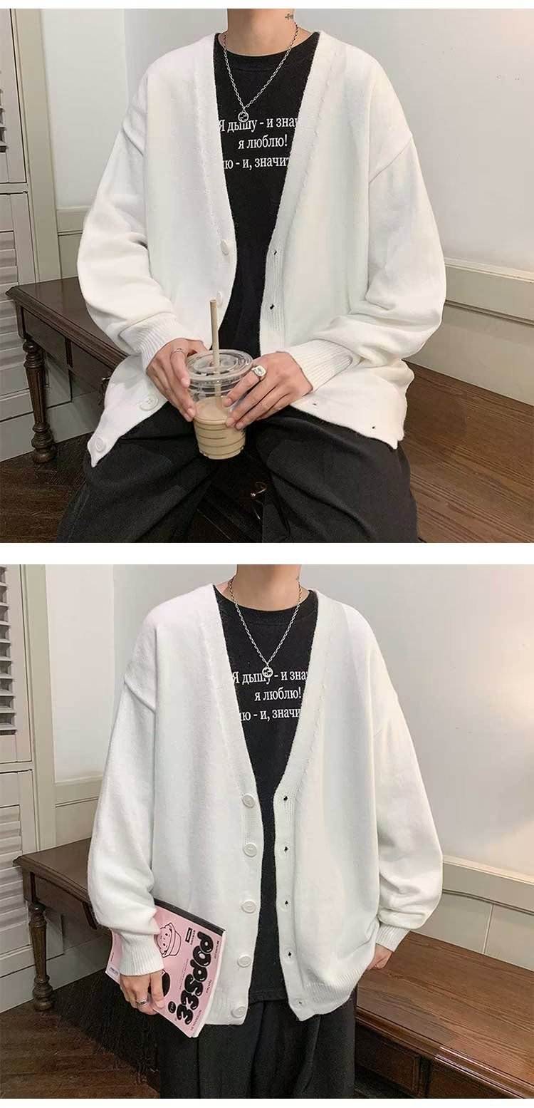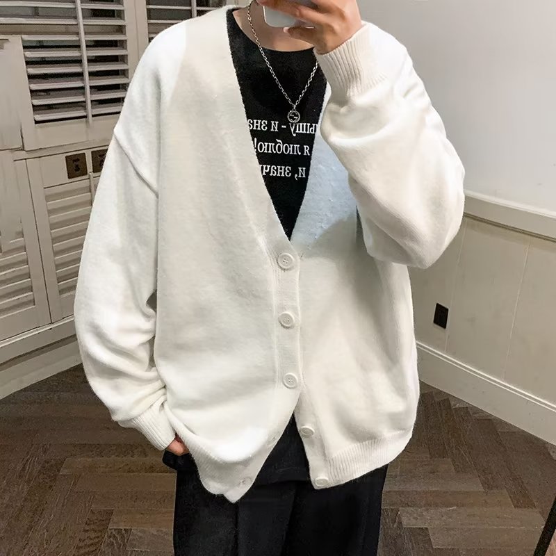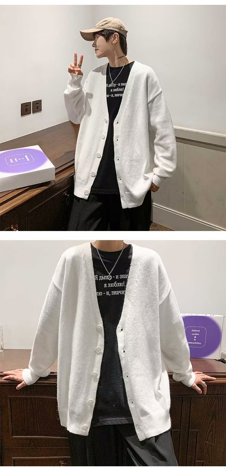 가디건 스웨터 남자의 가을 한국식 유행 느슨한 단색 아카데미 스타일 니트 스웨터 인스 타 그램 인기 브랜드 재킷 남성복스토어 가기