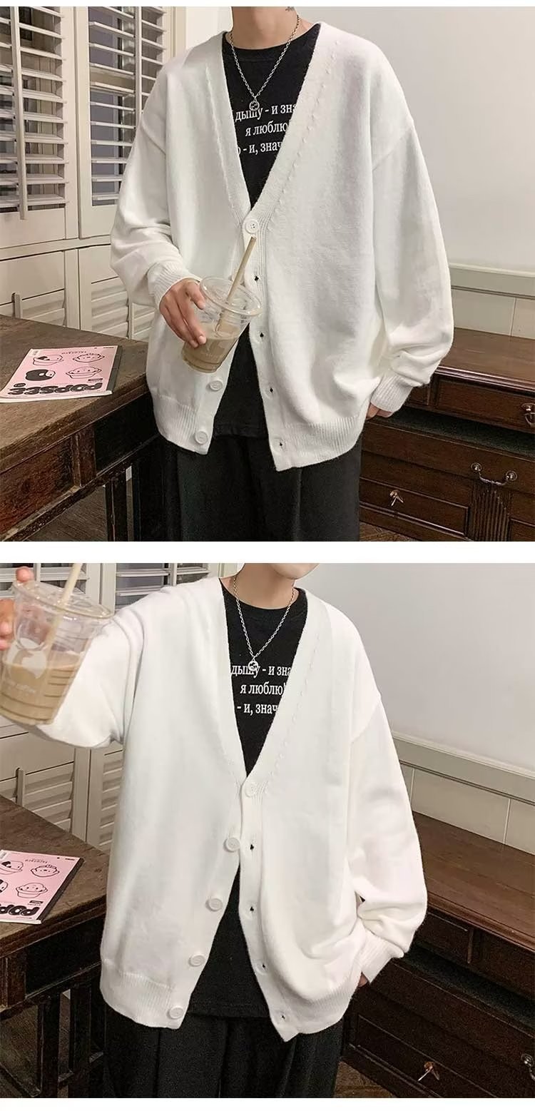가디건 스웨터 남자의 가을 한국식 유행 느슨한 단색 아카데미 스타일 니트 스웨터 인스 타 그램 인기 브랜드 재킷 남성복