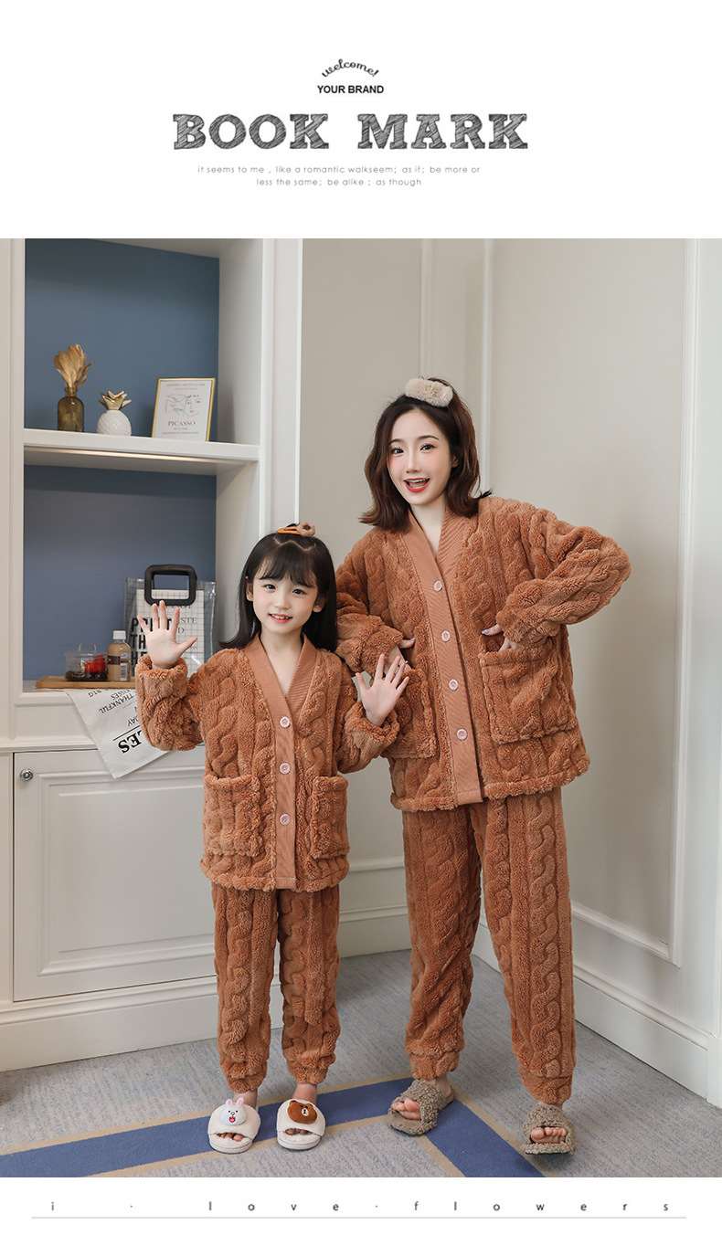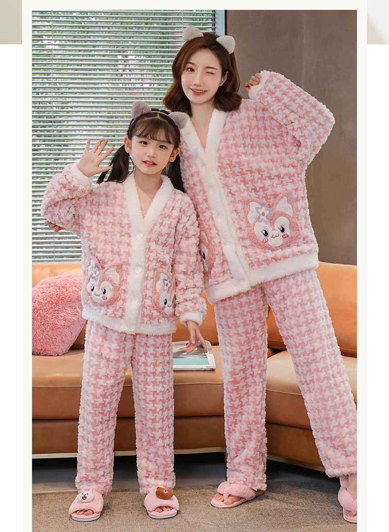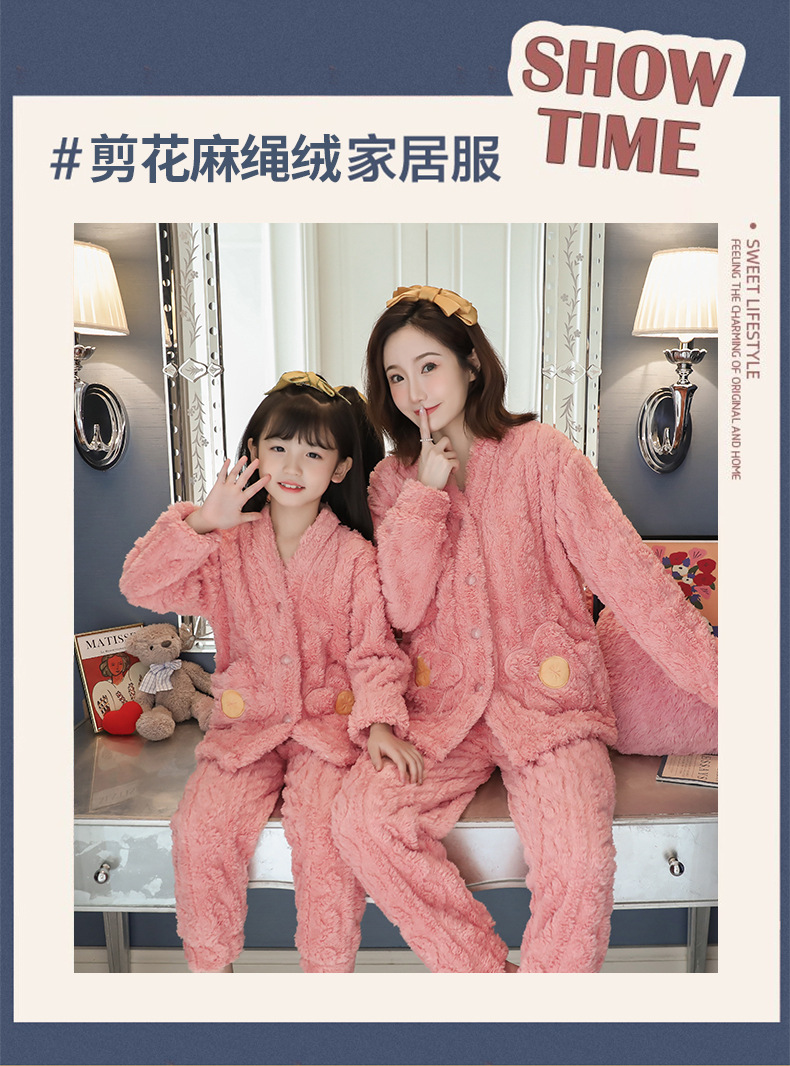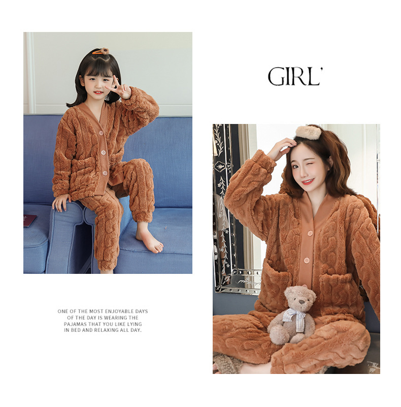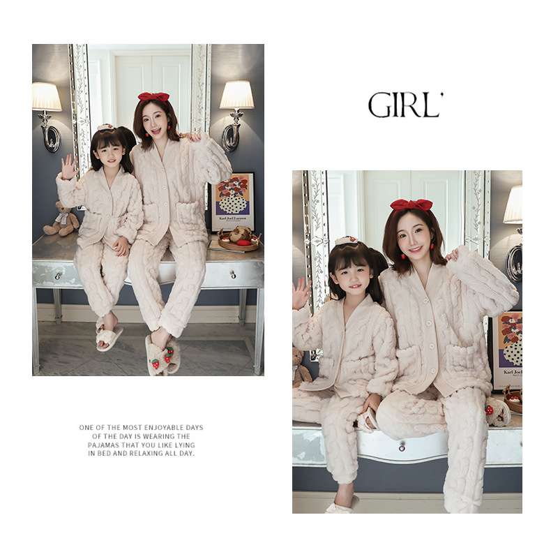 어린이 플란넬 잠옷 겨울 여아 산호 양털 두꺼운 세트 중년 어린이 엄마와 아이 가정 옷 겨울스토어 가기
