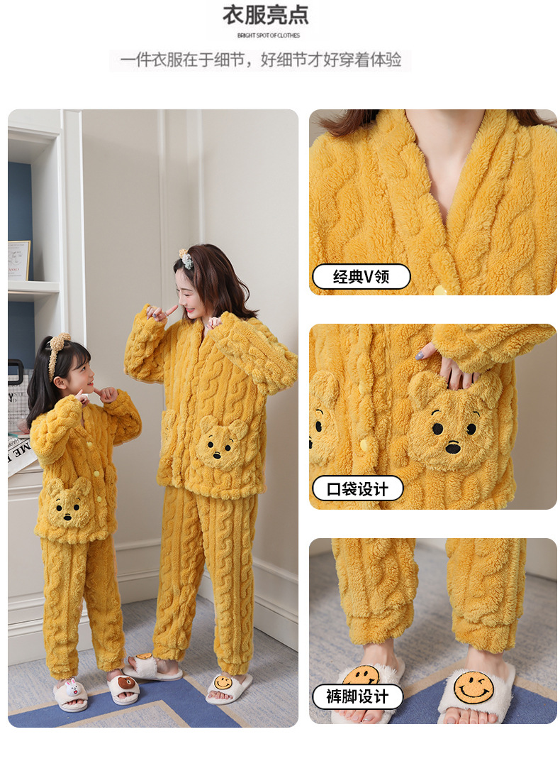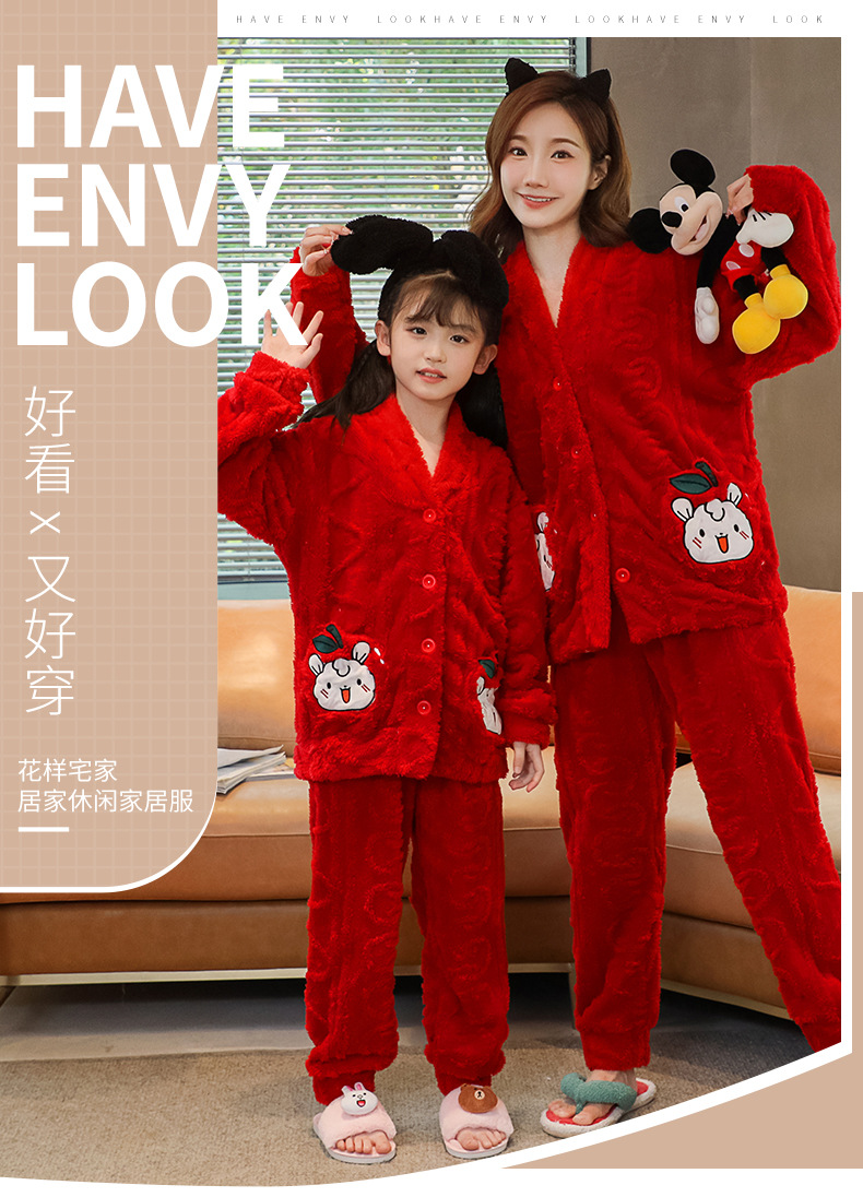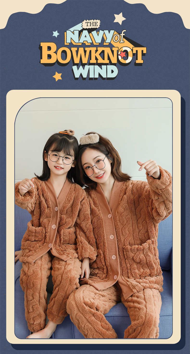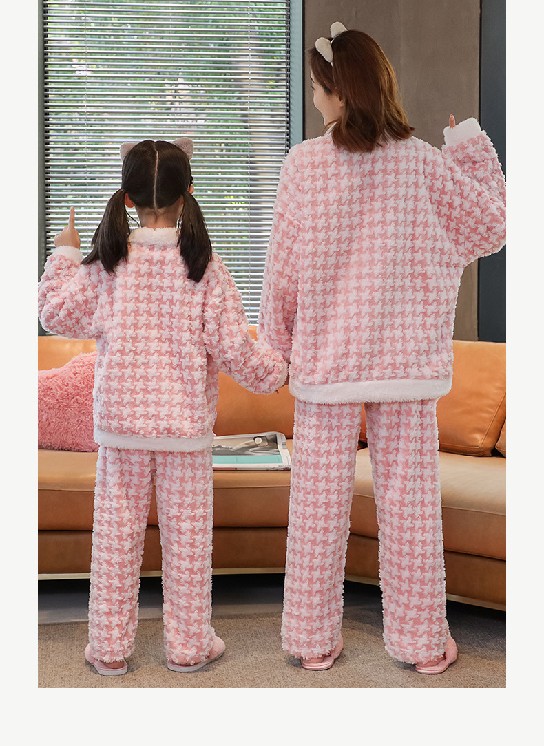 어린이 플란넬 잠옷 겨울 여아 산호 양털 두꺼운 세트 중년 어린이 엄마와 아이 가정 옷 겨울스토어 가기
