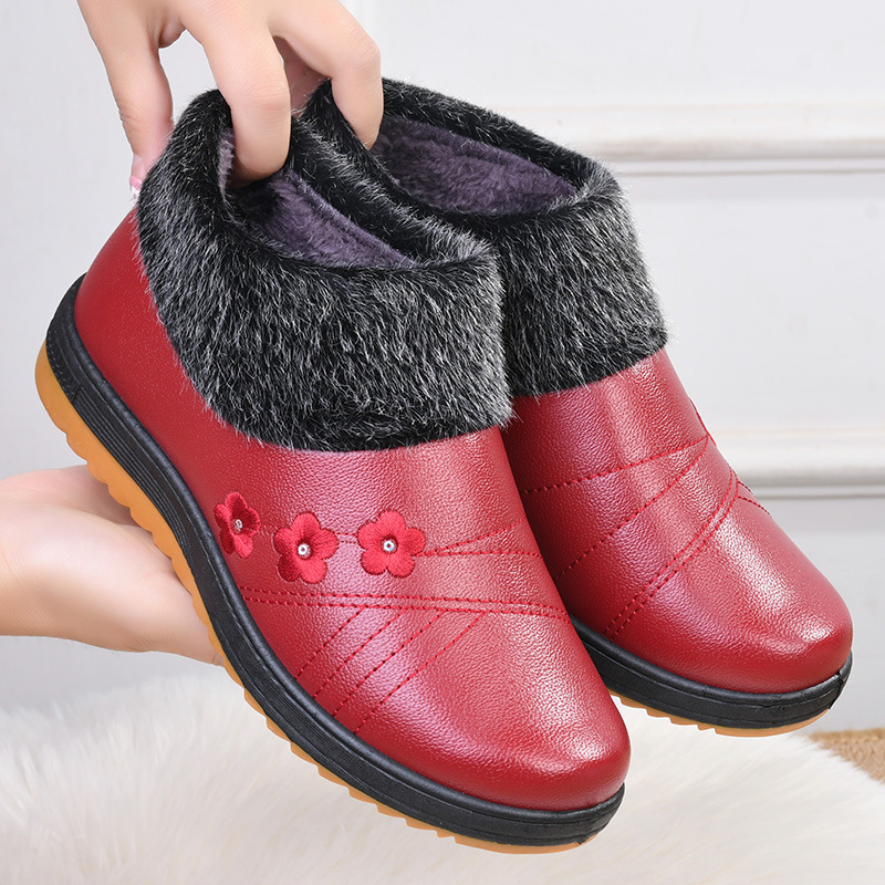 겨울 여성용 면화 부츠 미끄럼 방지 내구성 방수 중년 및 노년층 따뜻한 스노우 부츠 엄마용 면화 슬립온 부츠