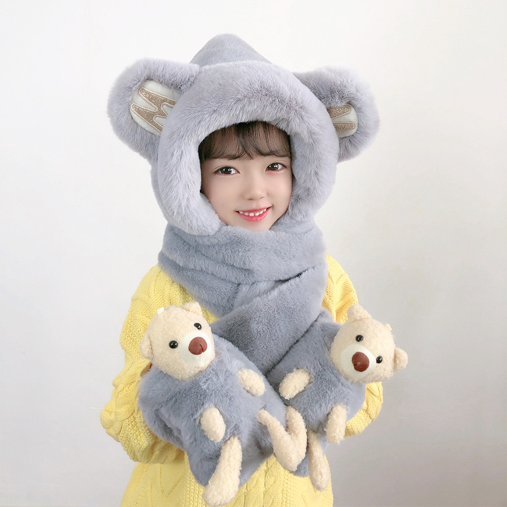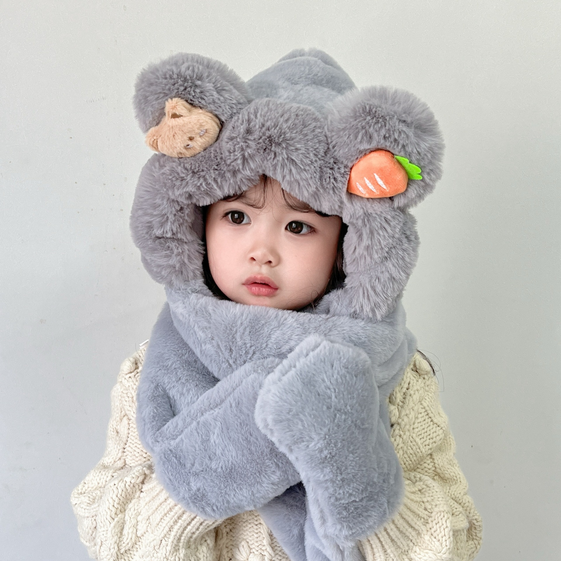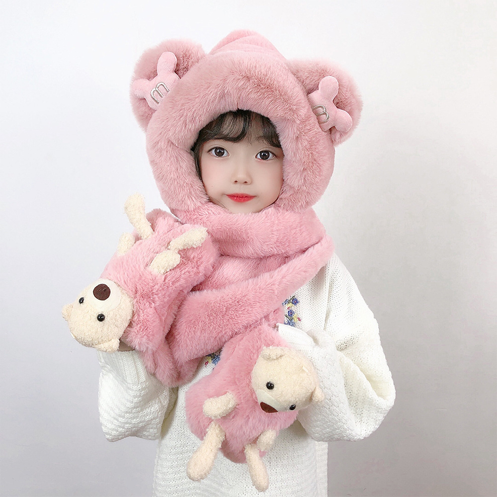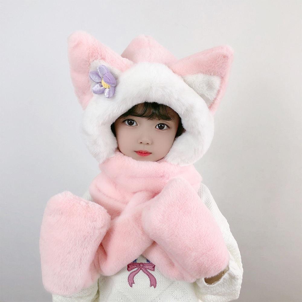 소년과 소녀 귀여운 가을과 겨울 모자 스카프 장갑 3 종 세트 기모 야외 Baotou 모자 어린이 원피스 모자스토어 가기