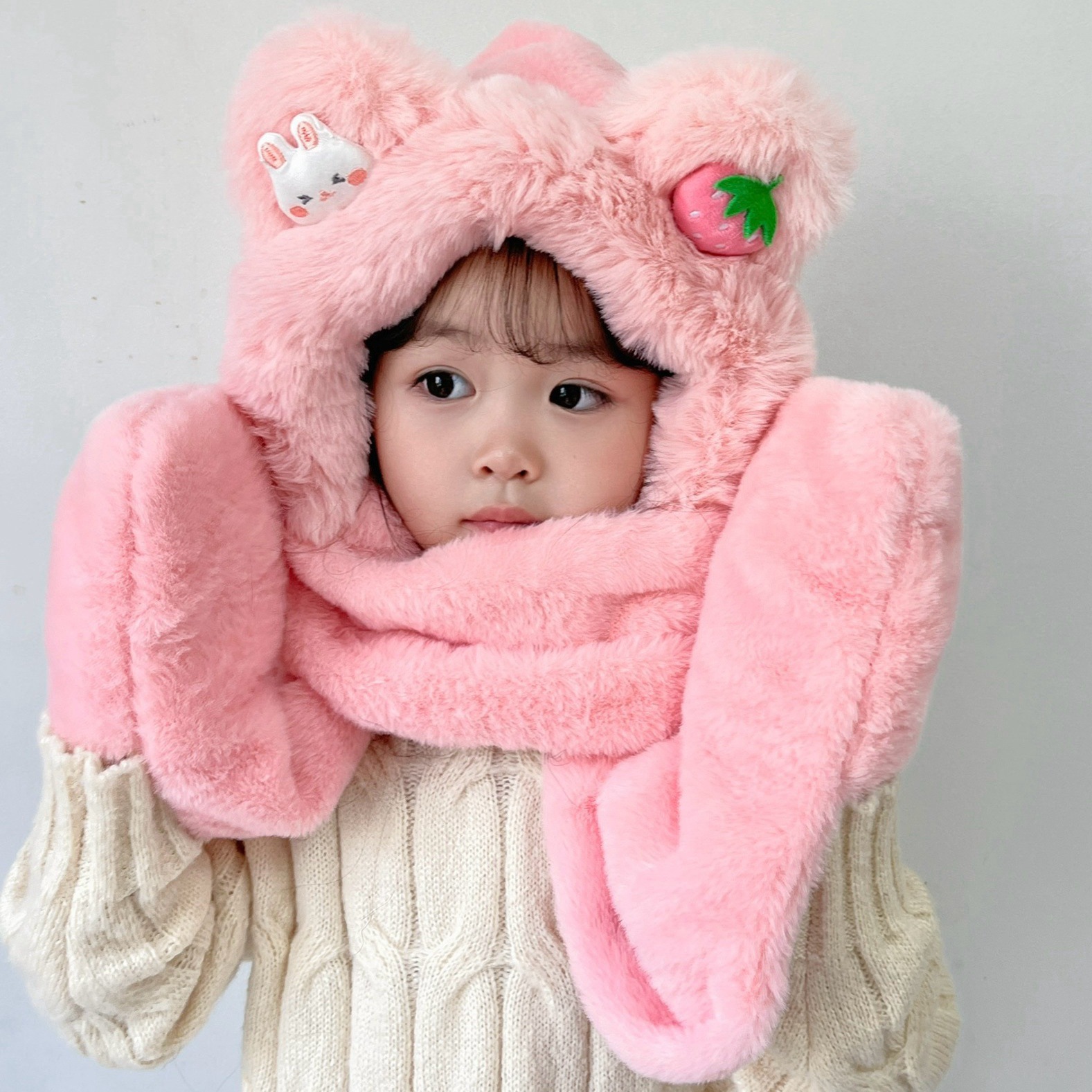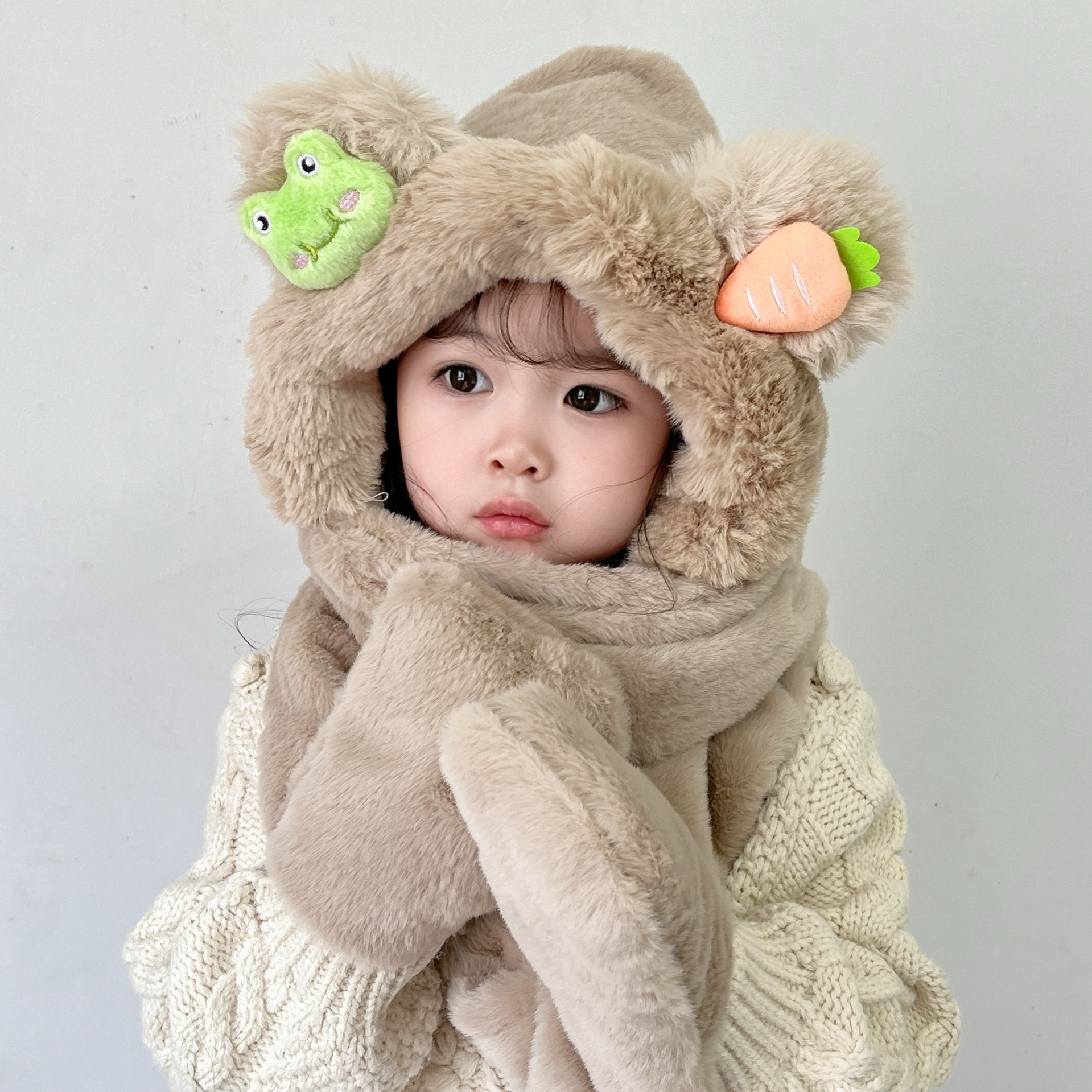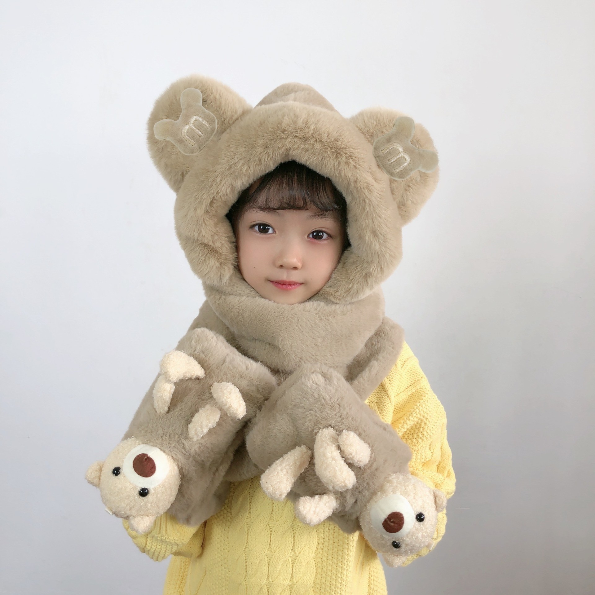 소년과 소녀 귀여운 가을과 겨울 모자 스카프 장갑 3 종 세트 기모 야외 Baotou 모자 어린이 원피스 모자스토어 가기
