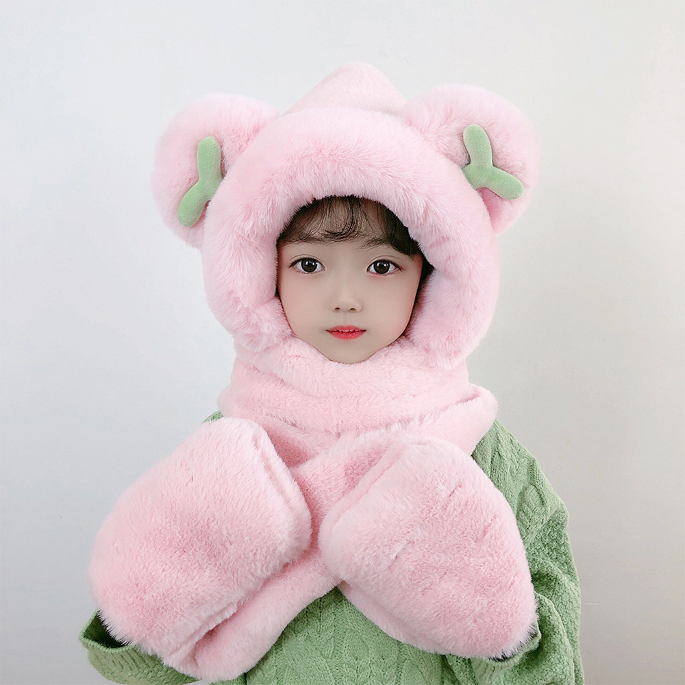 소년과 소녀 귀여운 가을과 겨울 모자 스카프 장갑 3 종 세트 기모 야외 Baotou 모자 어린이 원피스 모자