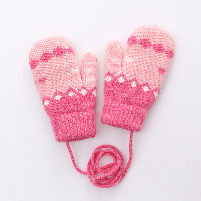 겨울 어린이 장갑 니트 따뜻한 기모 두꺼운 만화 귀여운 신문 매달려 목 감기 재고 도매