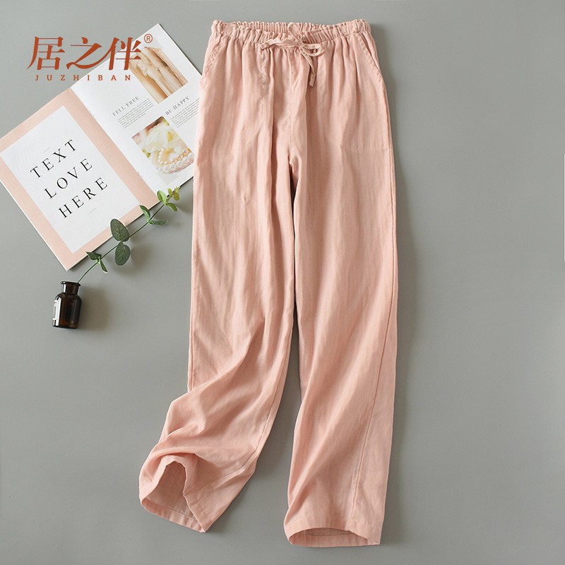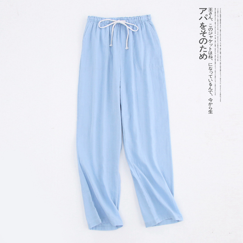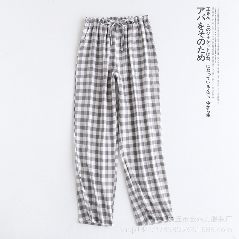 커플 파자마 바지 여름 새 면사 편안한 간단한 남성과 여성의 바지 격자 무늬 일본 통기성 홈 바지 에어컨 바지