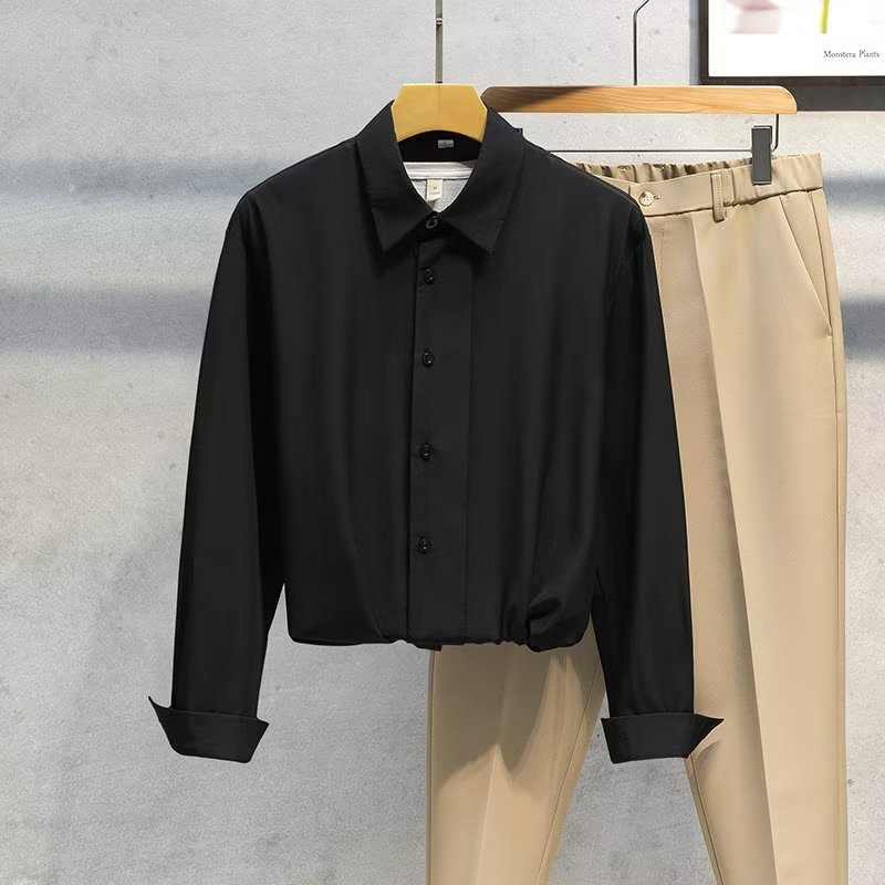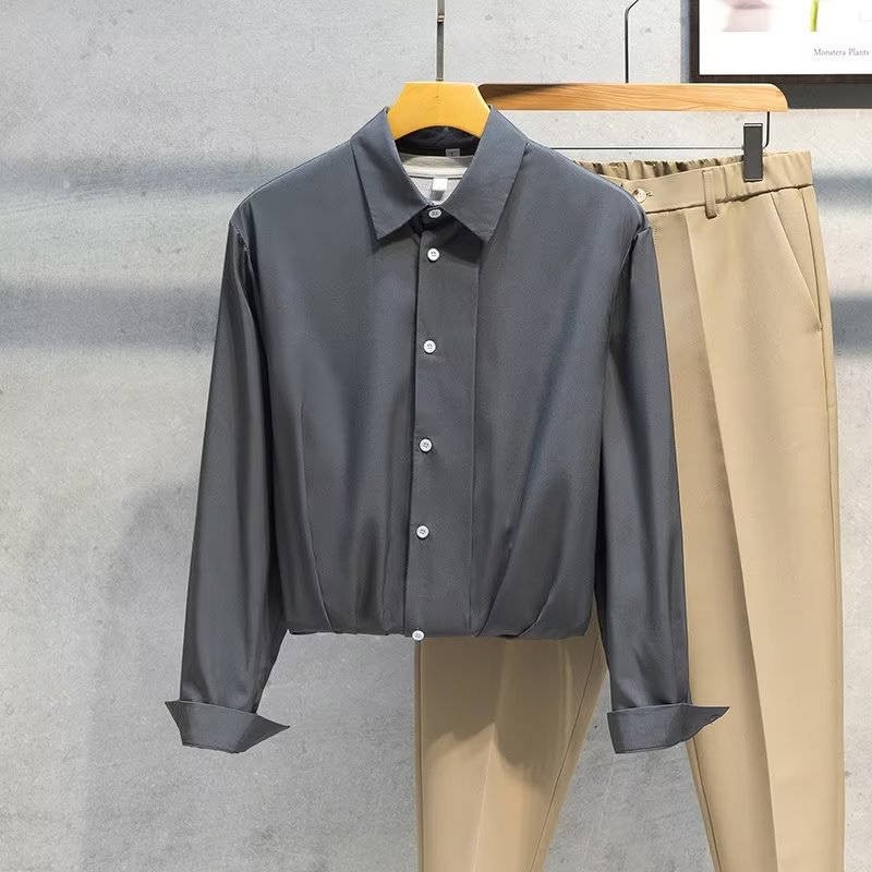 셔츠 남성용 긴팔 봄과 가을 드레이프 패션 브랜드 인 트렌드 느슨한 캐주얼 셔츠 코트 남성용 원피스 헤어 생성