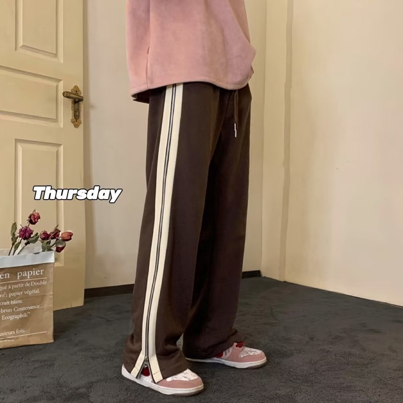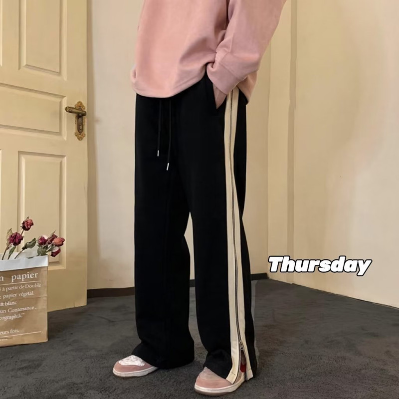 사이드 슬릿 지퍼 스포츠 와이드 레그 팬츠 남자의 아메리칸 스타일 레트로 스트리트 일본 스타일 레이지 드롭 홍콩 스타일 트렌디 인 팬츠스토어 가기