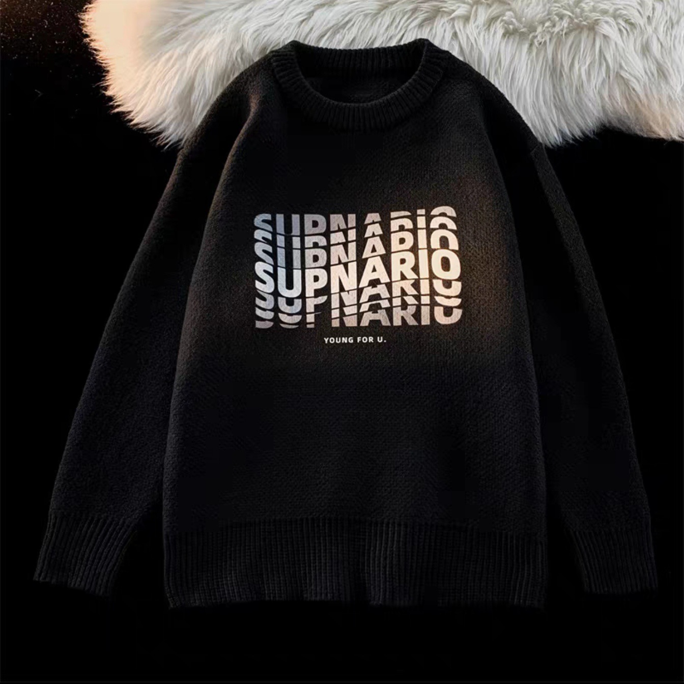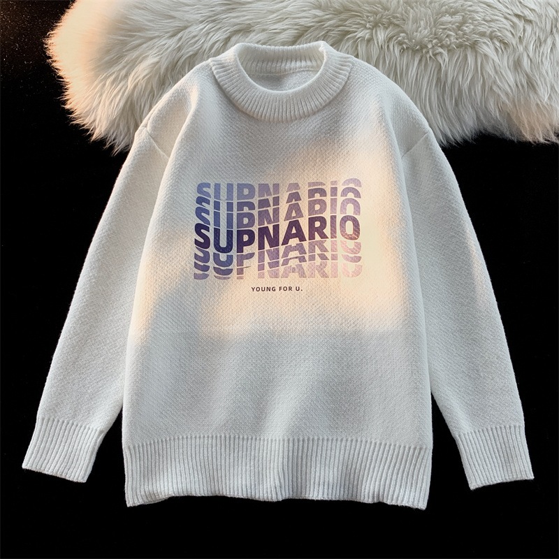 潮流字母印花毛衣情侣ins港风秋冬季软糯套头针织衫宽松男生外套