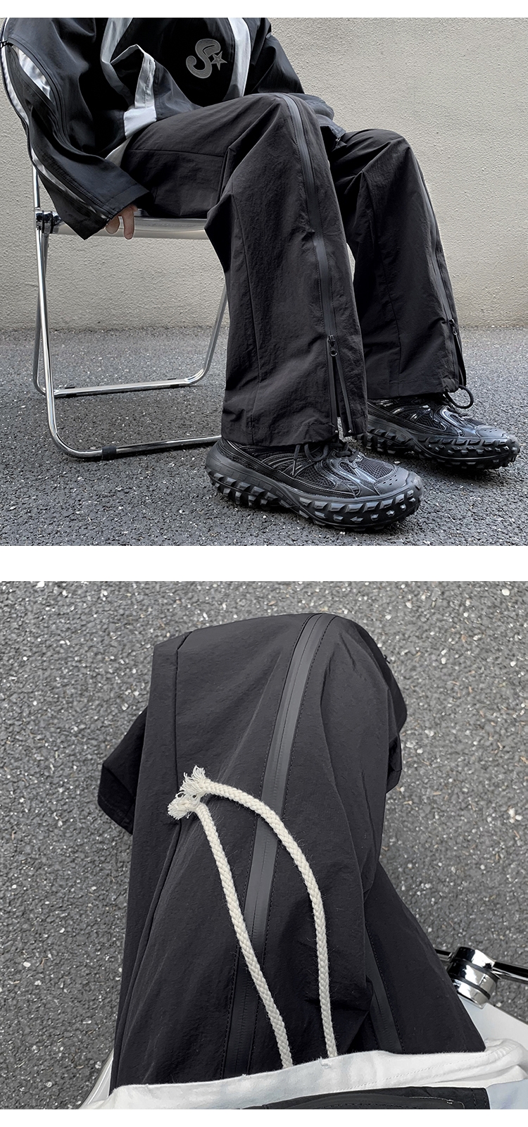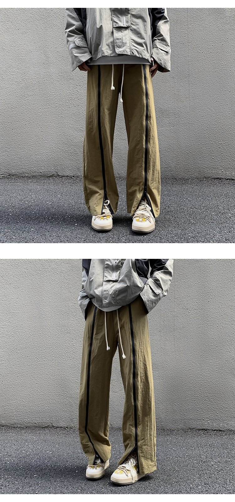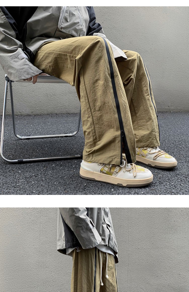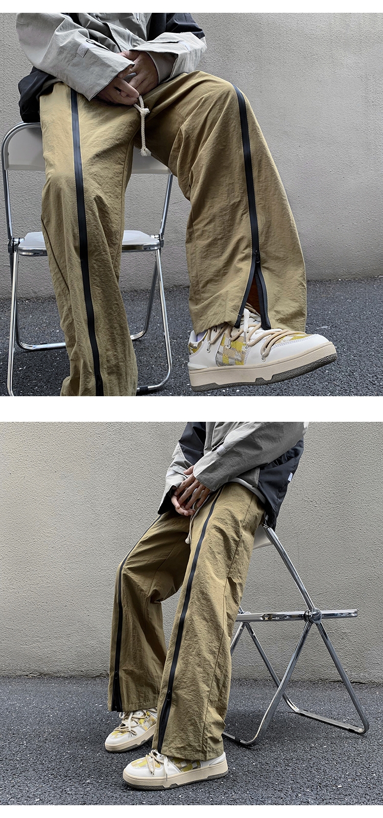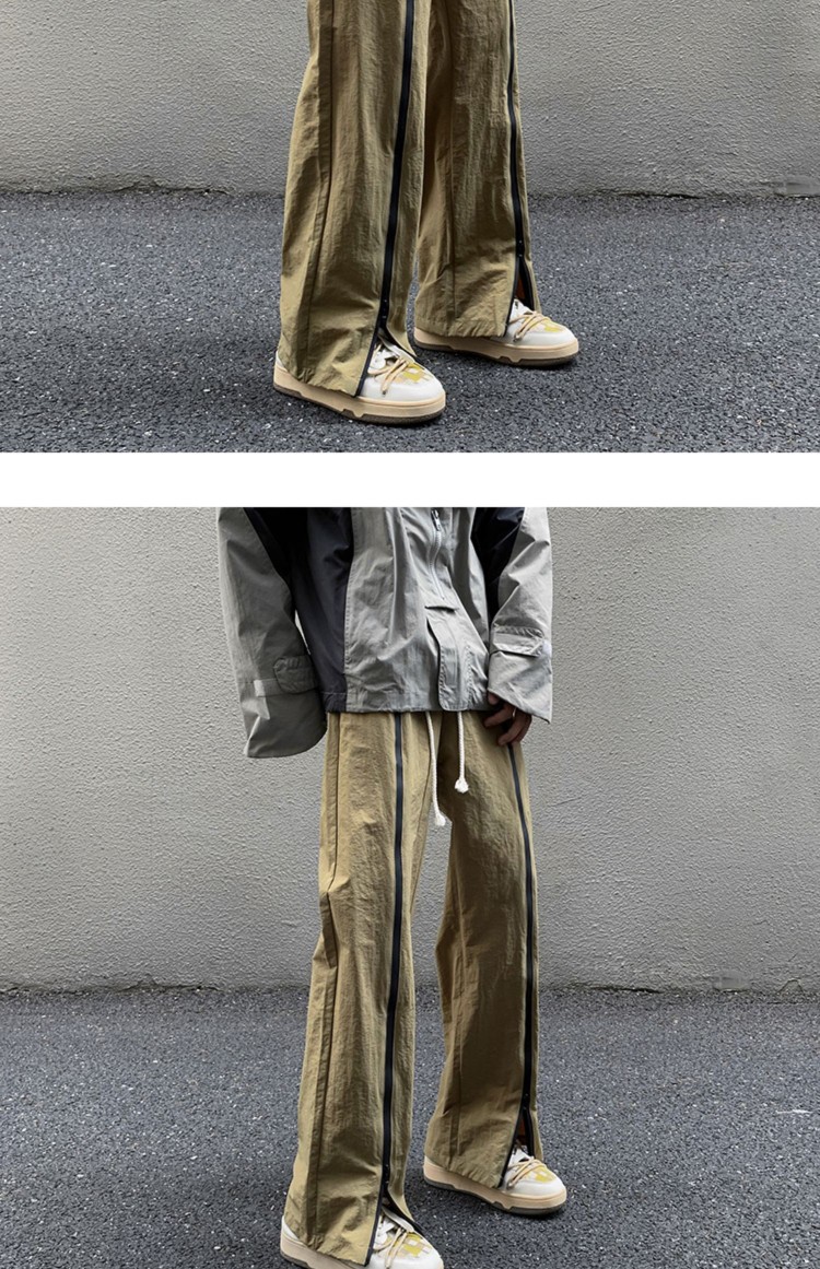 아메리칸 스타일 방수 러쉬 팬츠 남성용 나일론 지퍼 분할 야외 기능 작업복 하이 스트리트 유행 브랜드 스트레이트 팬츠