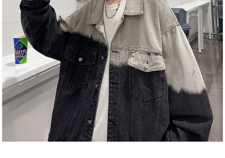 그라디언트 데님 재킷 남자의 봄과 가을 2022 새로운 가을 느슨한 한국의 미국 스타일 복고풍 홍콩 스타일 재킷 탑스토어 가기
