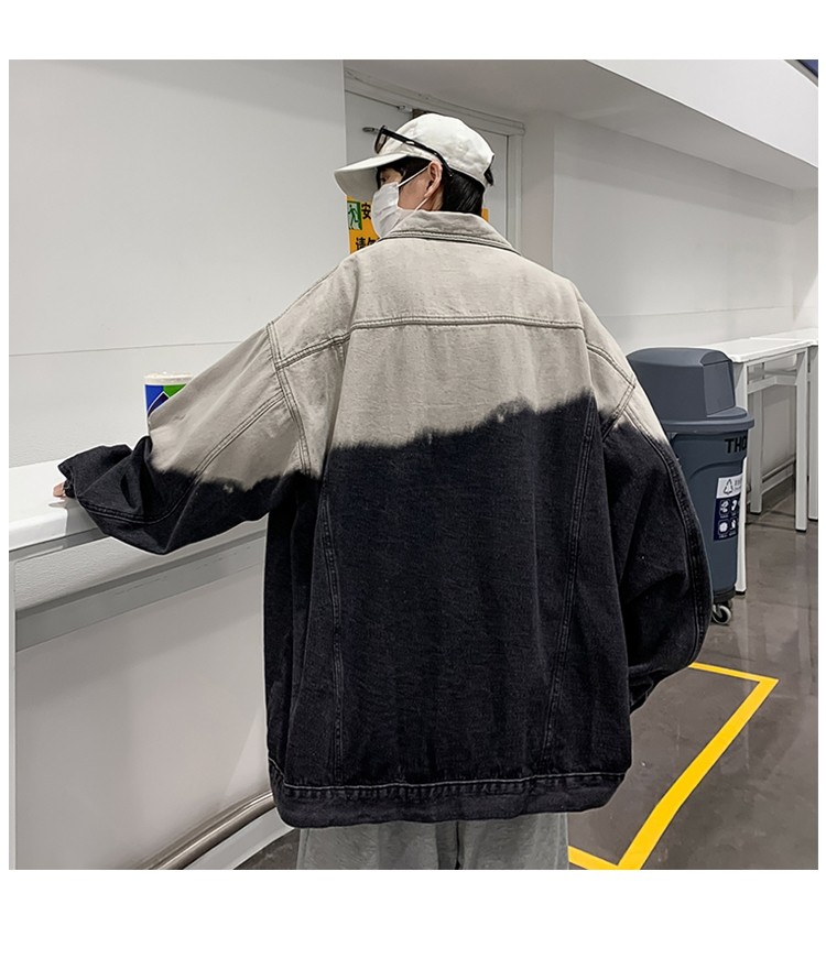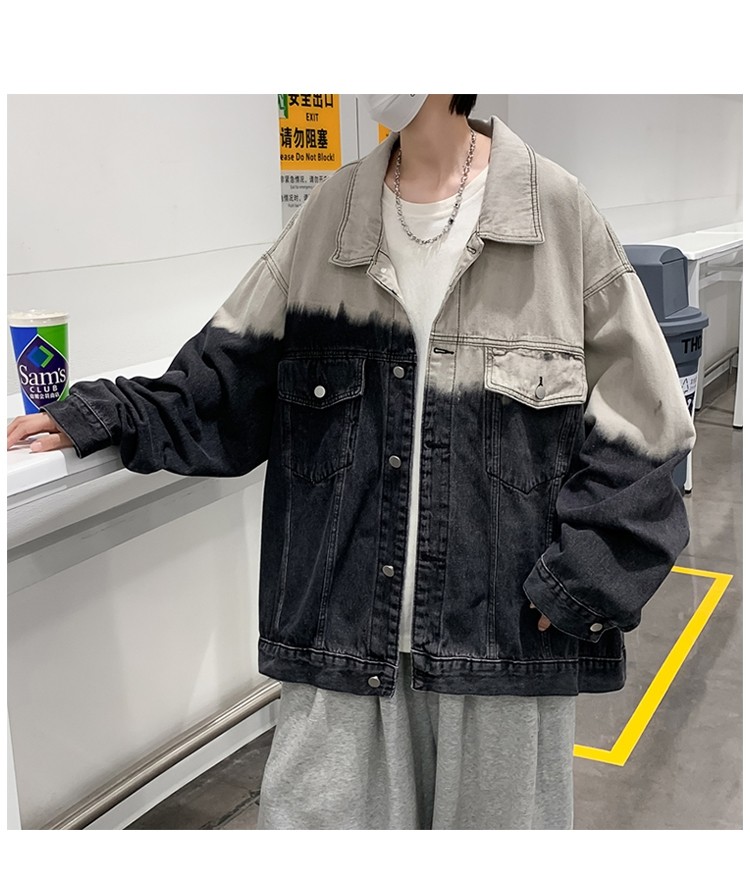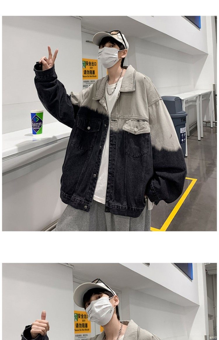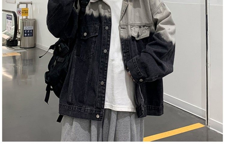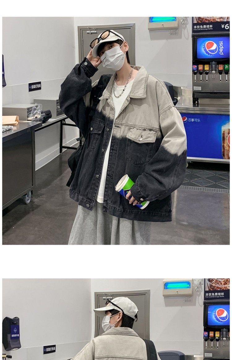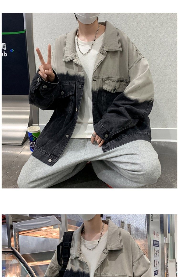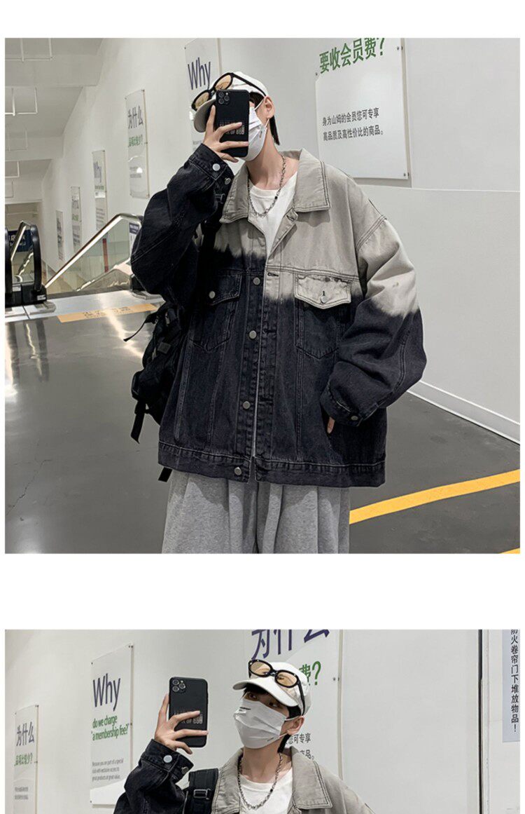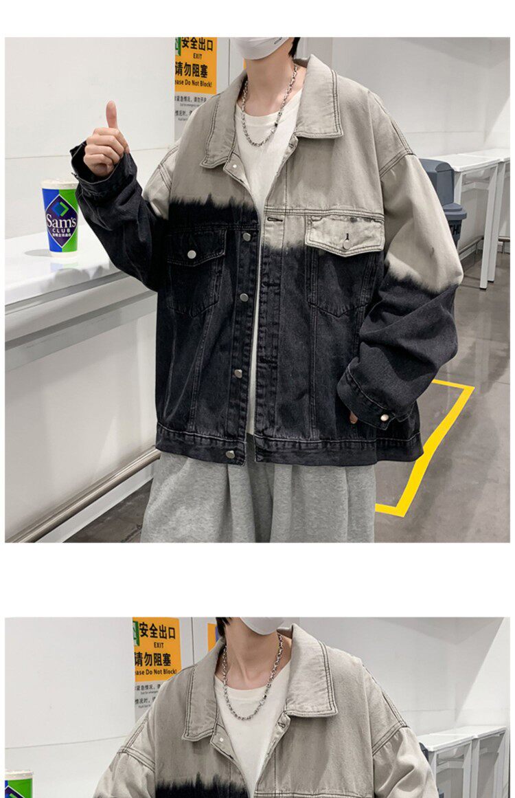 春秋季高街ins潮牌渐变色牛仔外套男韩版潮流宽松工装夹克上衣服