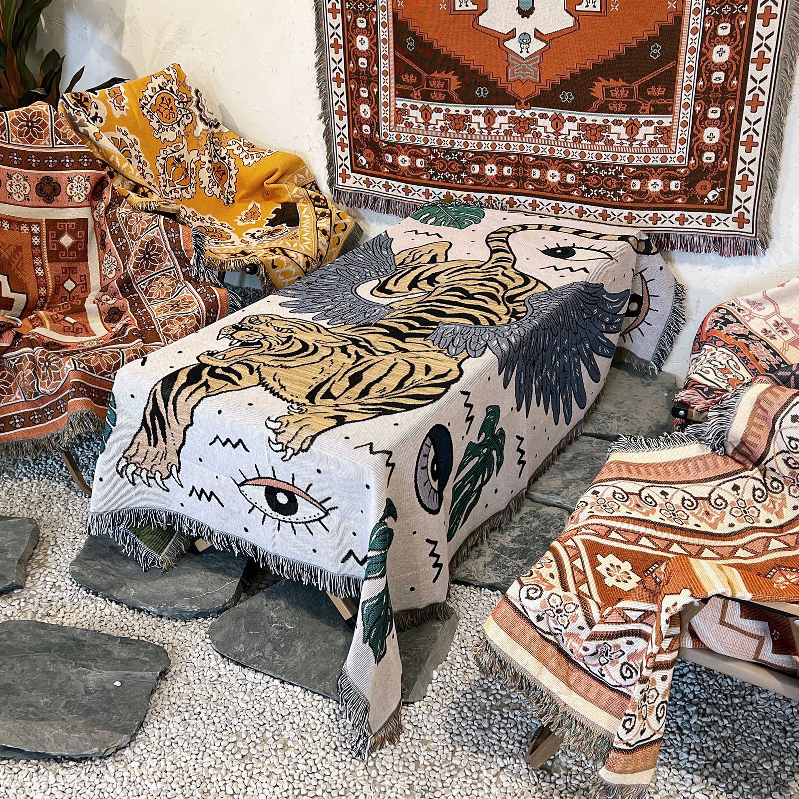 소파 담요 낮잠 담요 커버 담요 야외 피크닉 담요 바람 다기능 라인 담요 보헤미안 담요 캠핑 담요