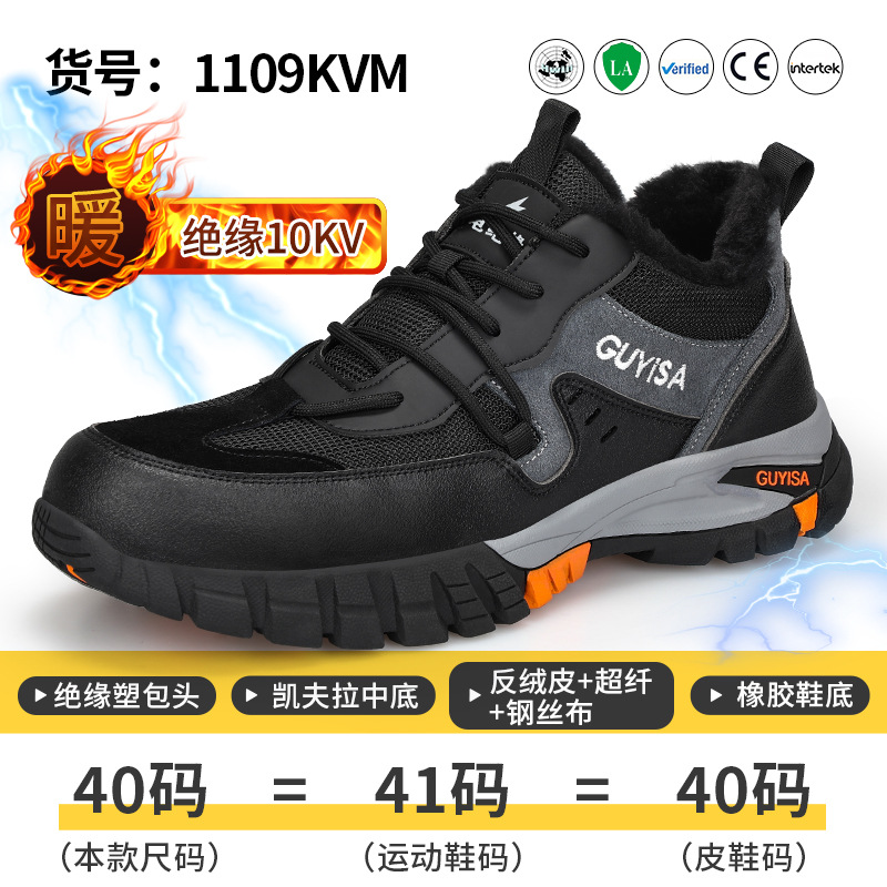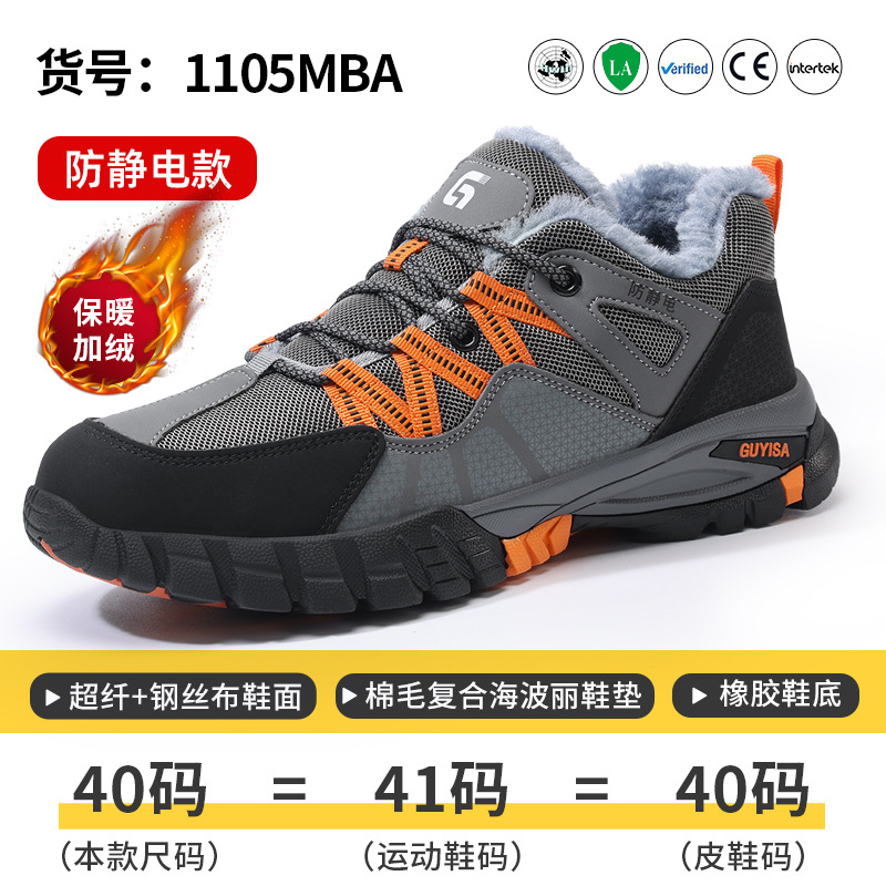 겨울용 안전화, 남성용, 벨벳 안감, 충격 방지, 관통 방지, 미끄럼 방지, 내마모성, 스틸 토, 편안하고 피곤하지 않은 보호화
