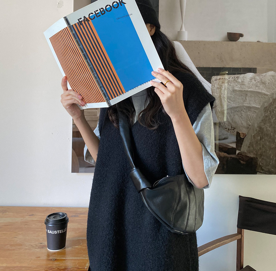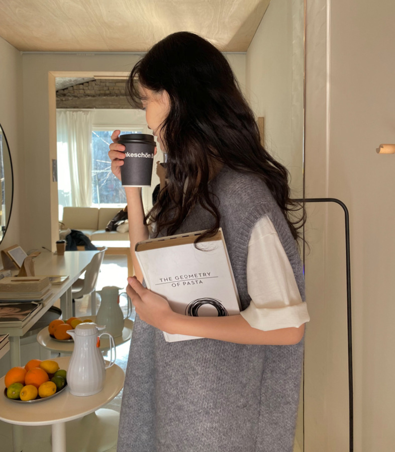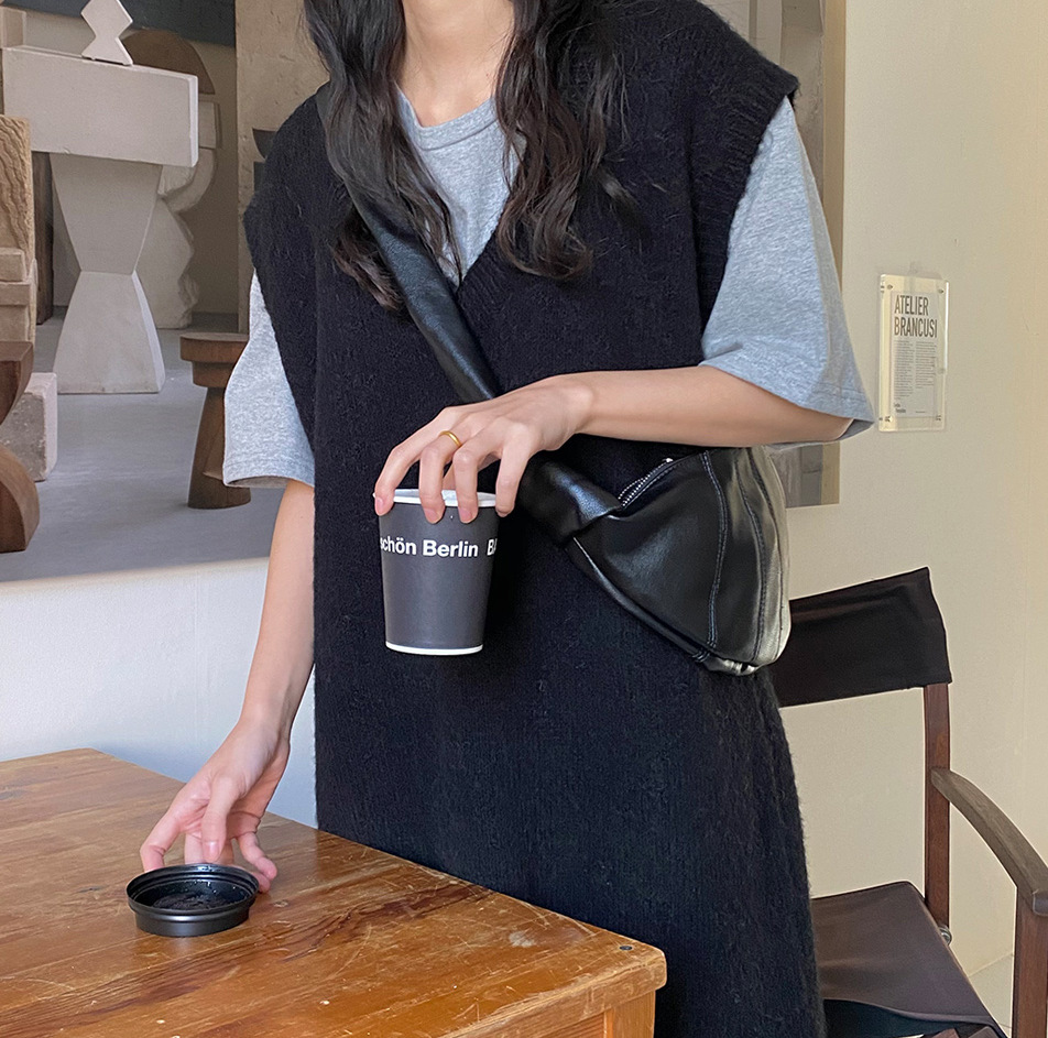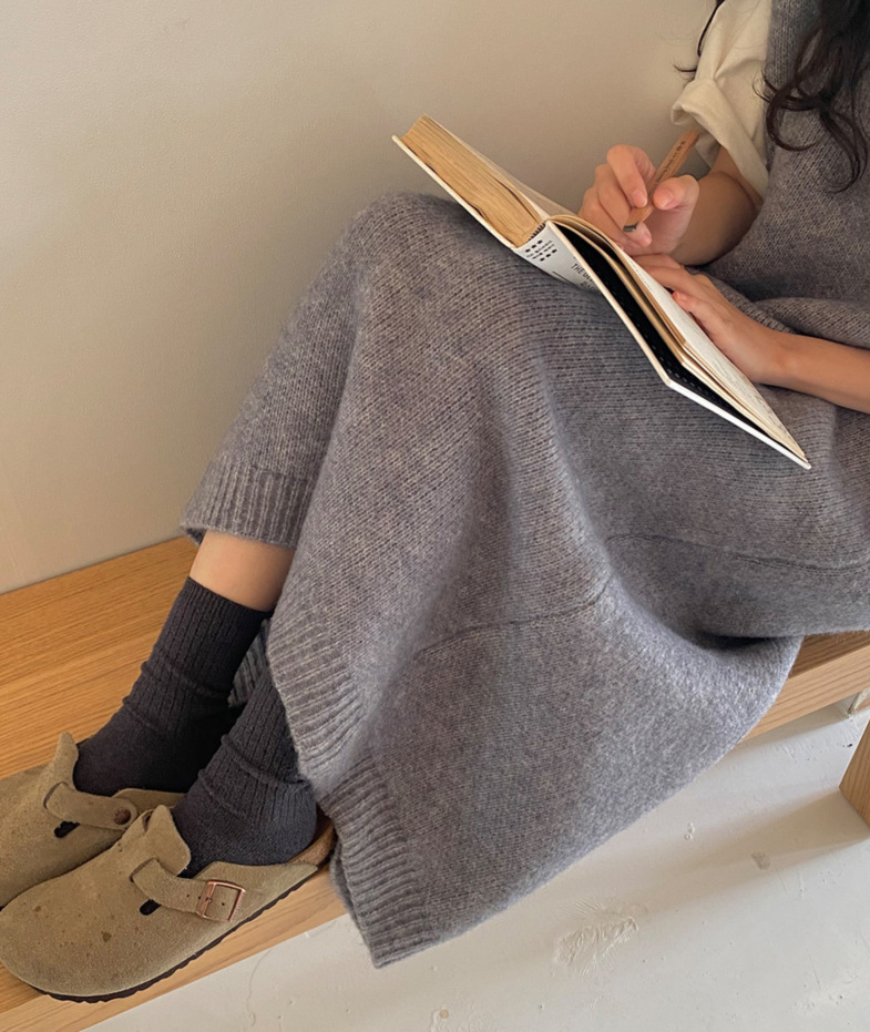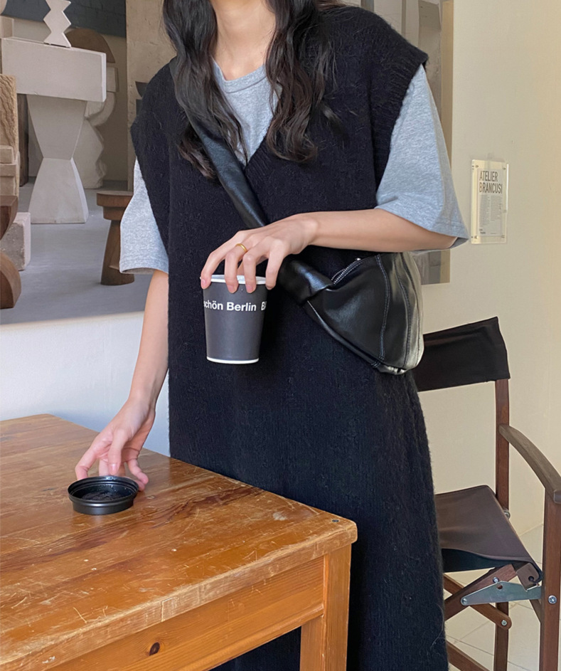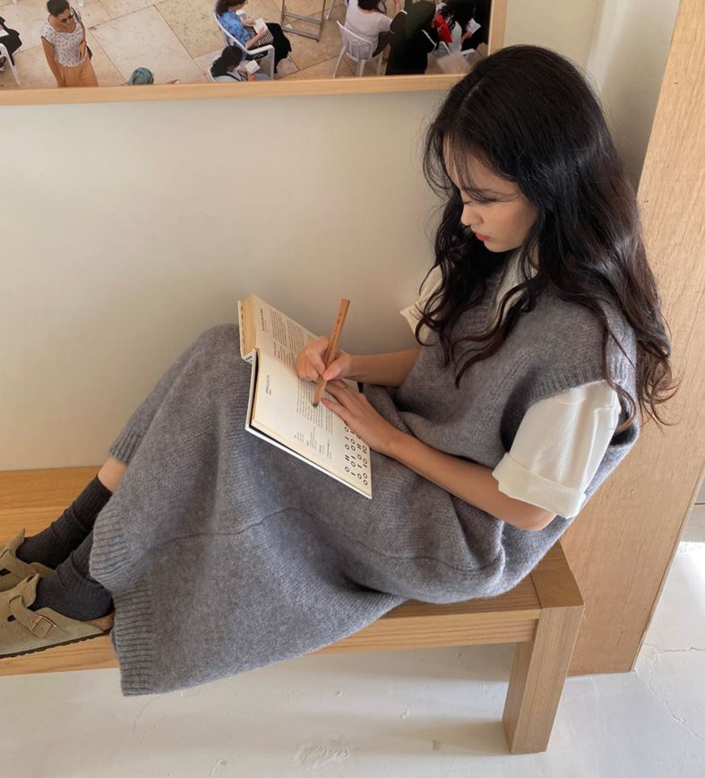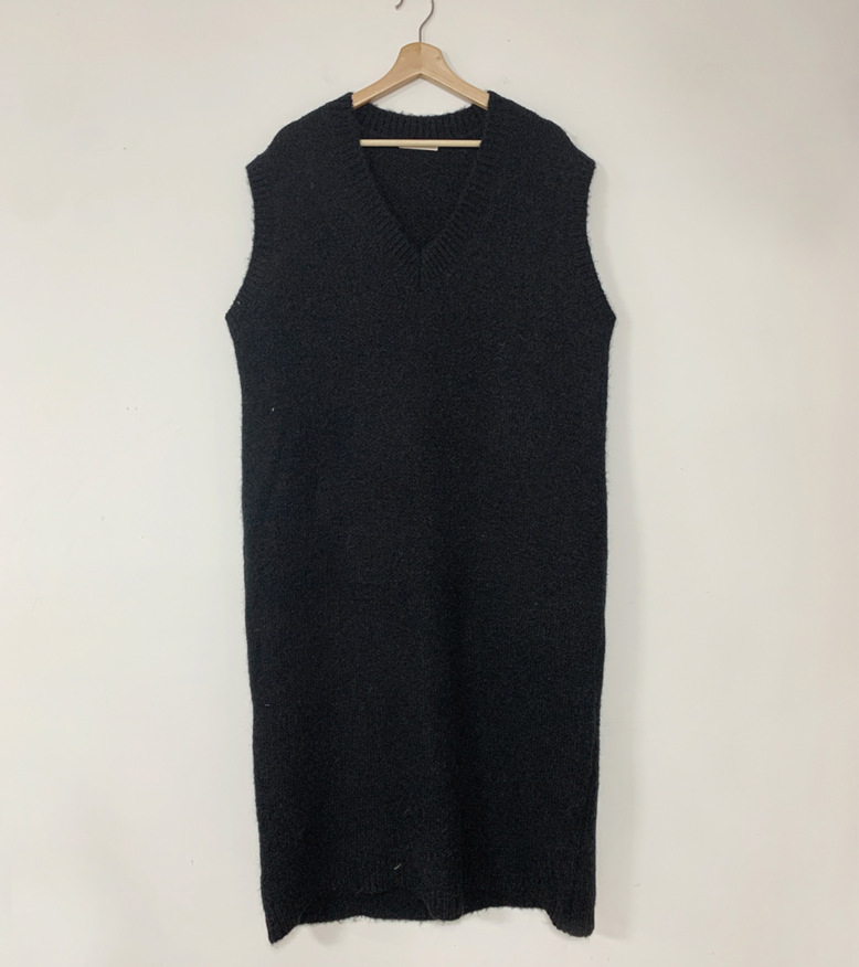 2023 가을과 겨울 여성을 원피스 간단한 단색 울트라 롱 플러스 사이즈 V-넥 니트 조끼 스커트 조끼의 새로운 한국어 버전스토어 가기