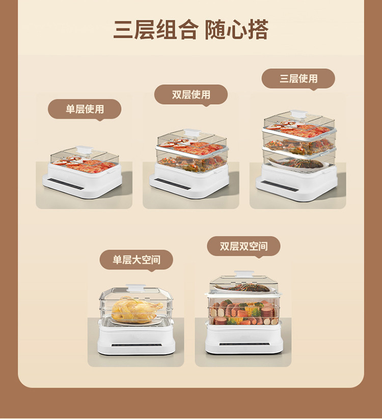 가정용 전기 증기선 다기능 투명 증기선 자동 조식 기계 소형 가전 3 층 대용량 증기선 상자
