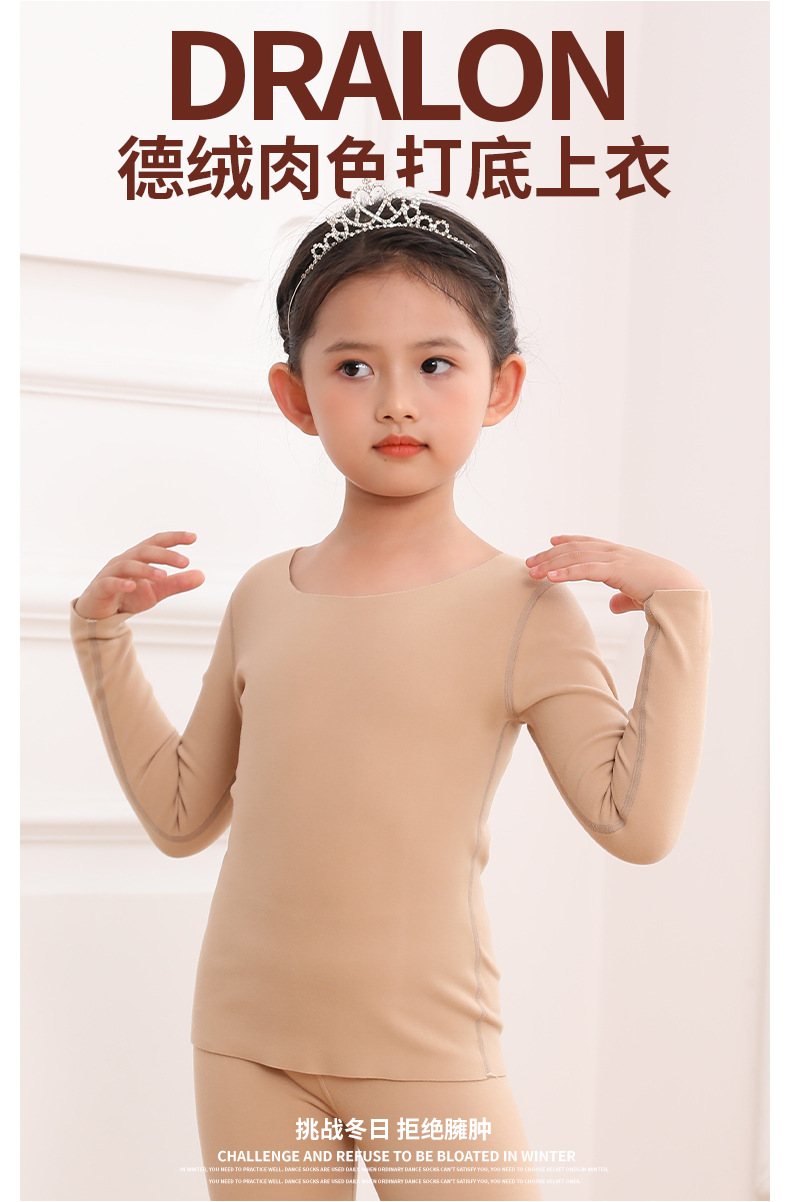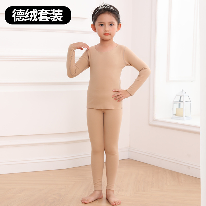 De Rong 어린이 열 속옷 세트 소녀 가을과 겨울 기모 원활한 다육 질 바닥 셔츠 대형 어린이 가을 옷과 바지