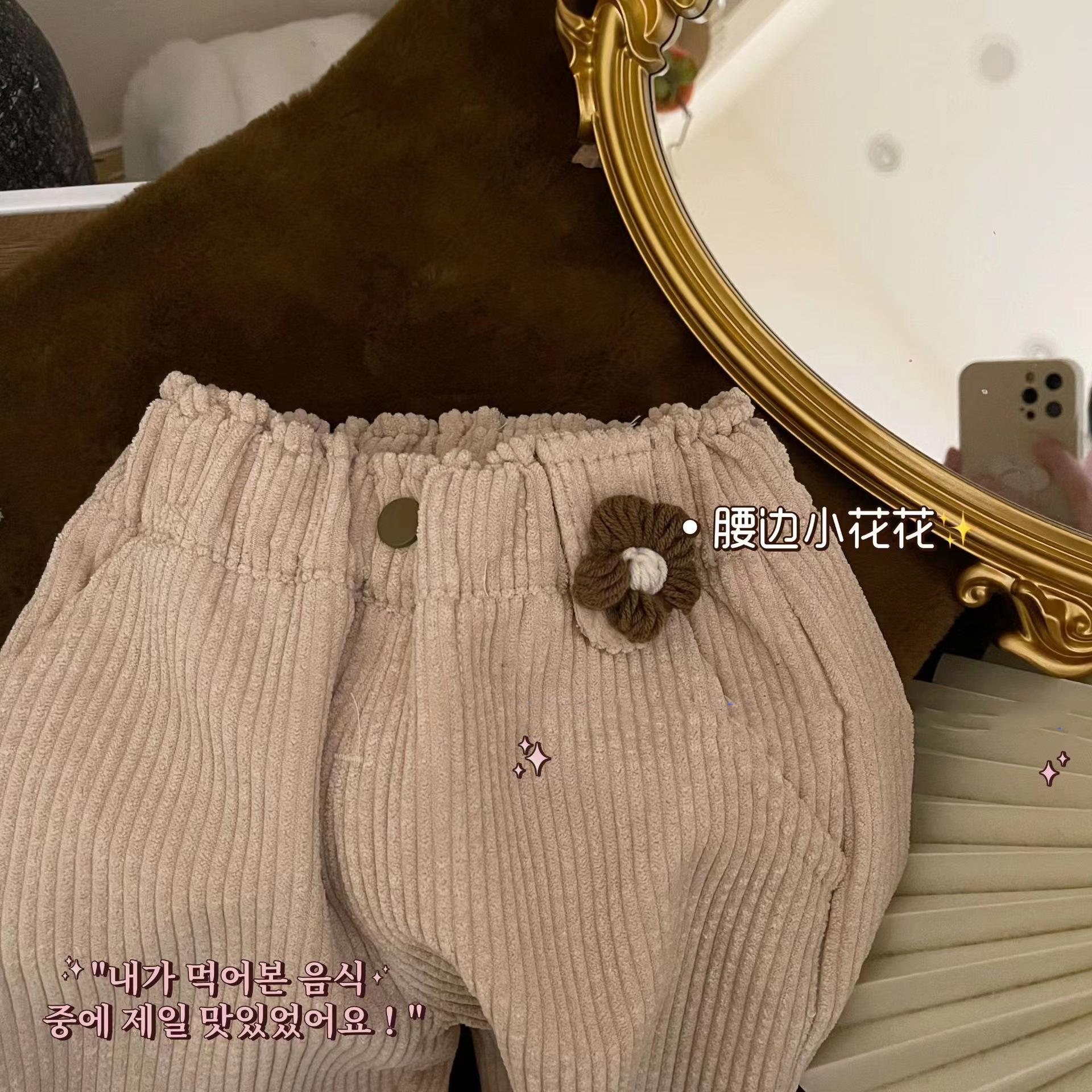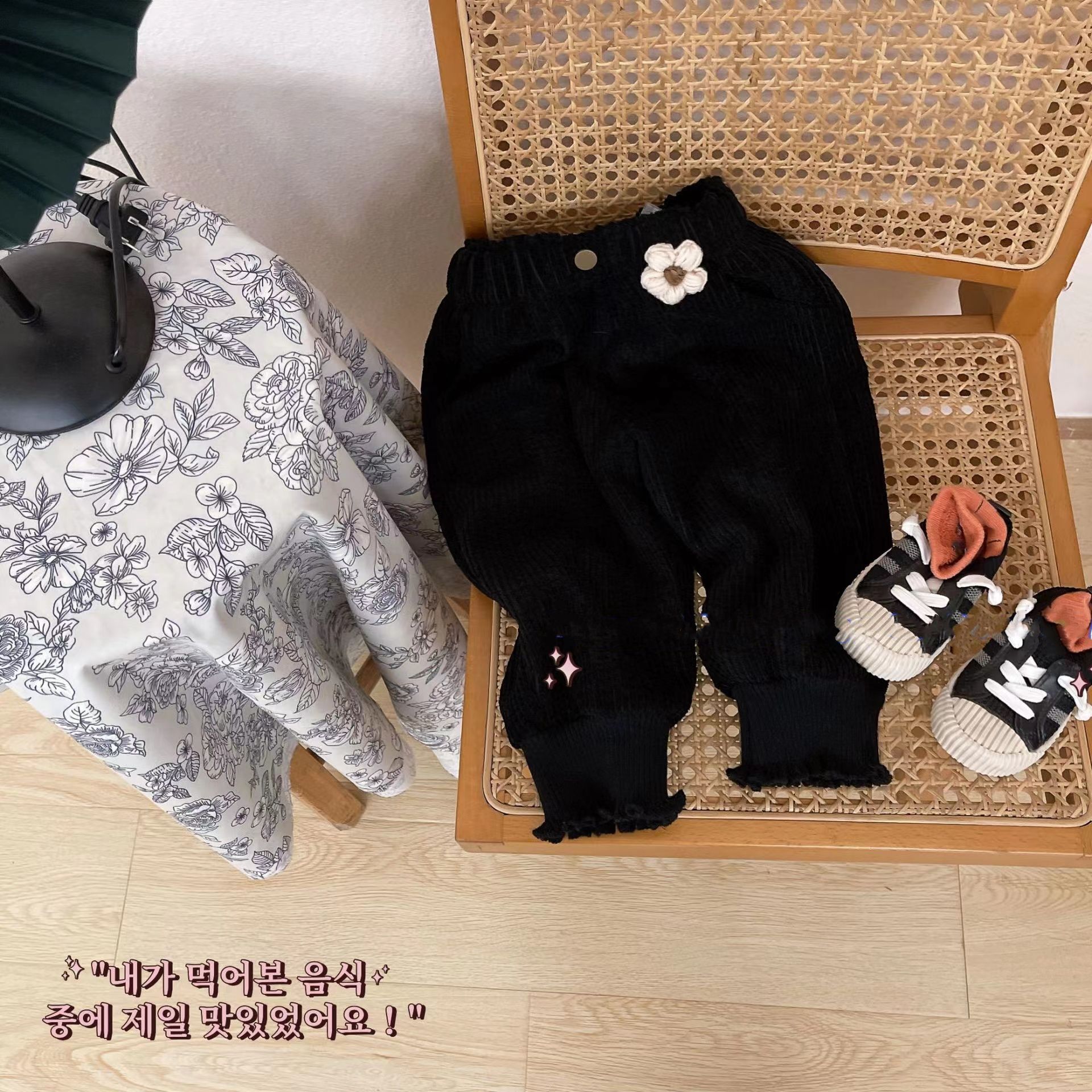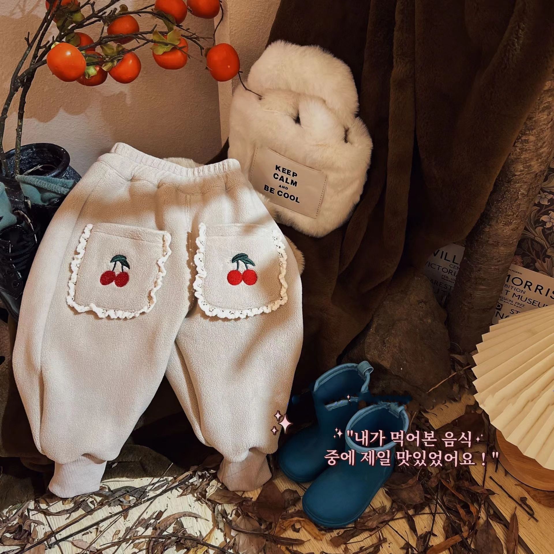 허니 아빠 여아 겨울 의류 체리 자수 캐주얼 바지 어린이 한국식 서양 스타일 따뜻한 바지 아기의 기모 바지