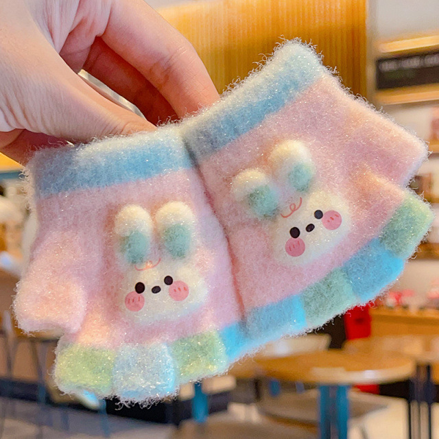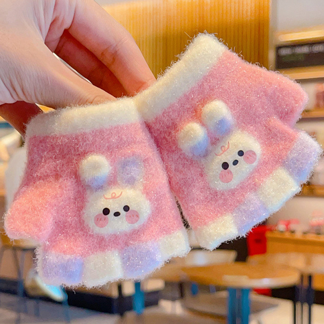 儿童手套冬季男童女孩卡通韩版半指翻盖防寒保暖中大童学生写字新