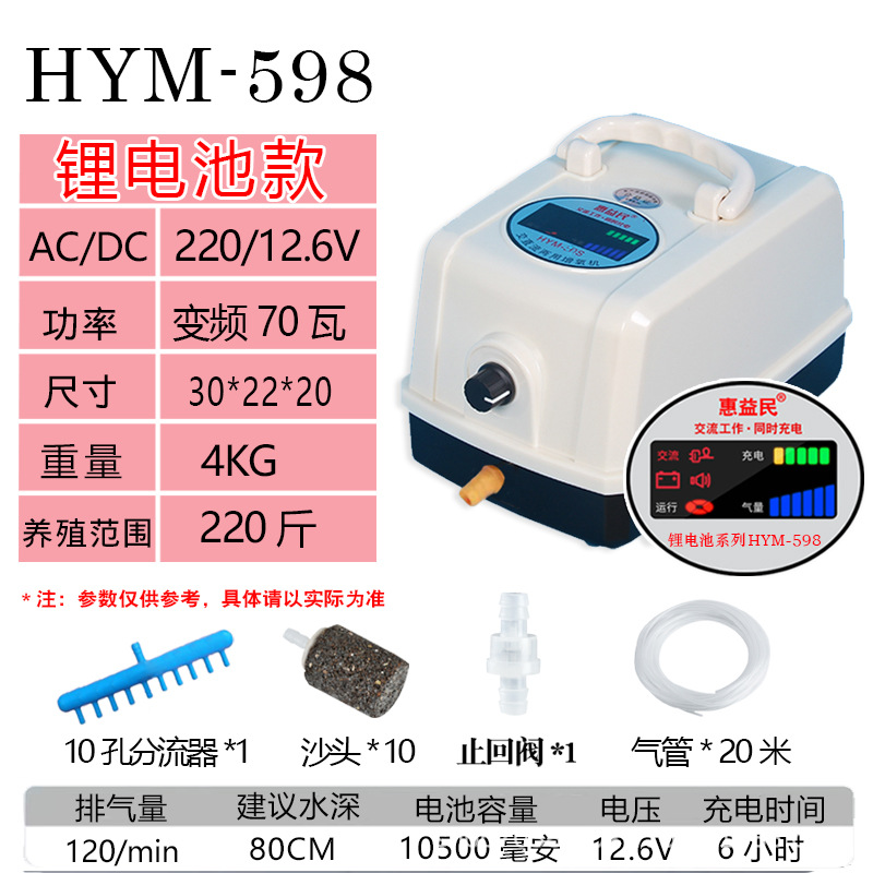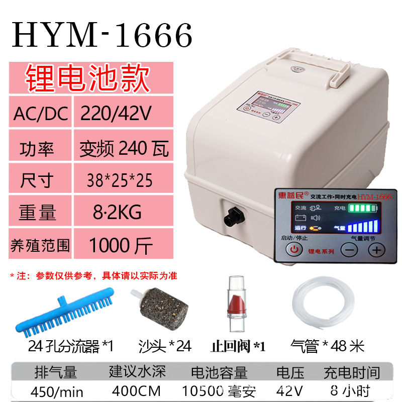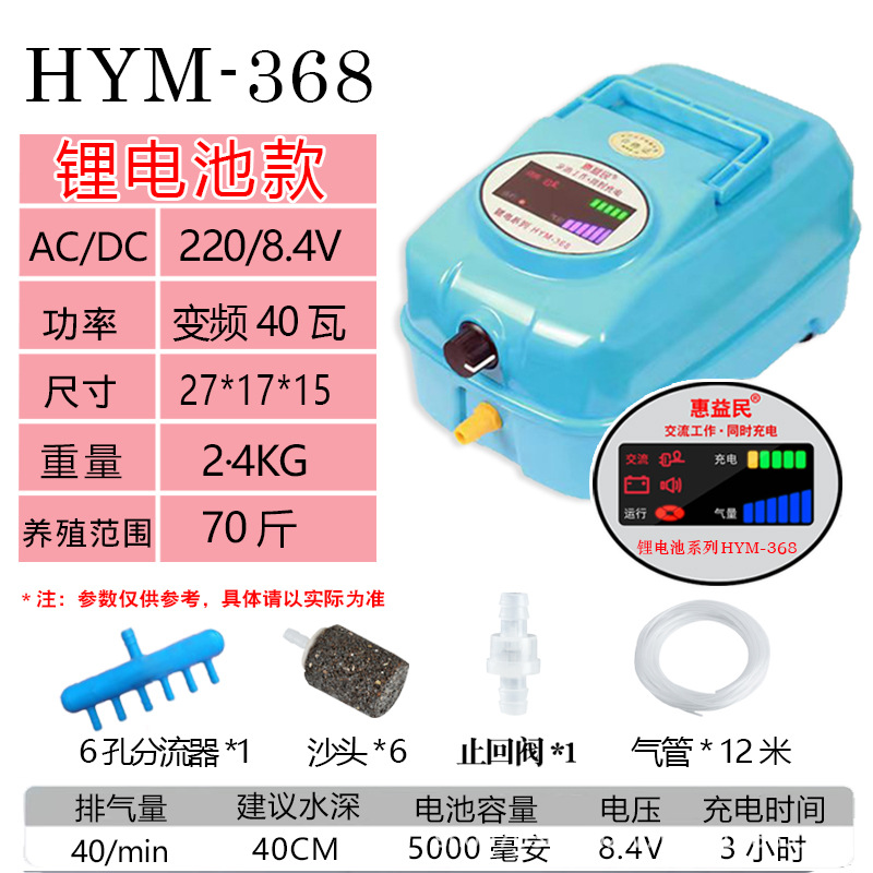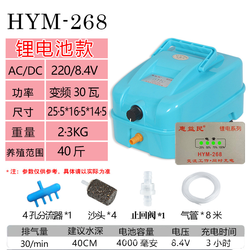 Huiyimin 리튬 배터리 산소 펌프 충전 AC/DC 이중 목적 방수 야외 낚시 산소 펌프 어항 충전 산소