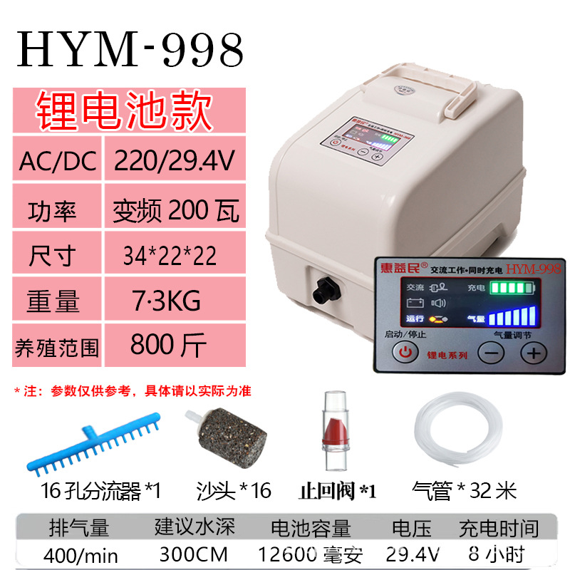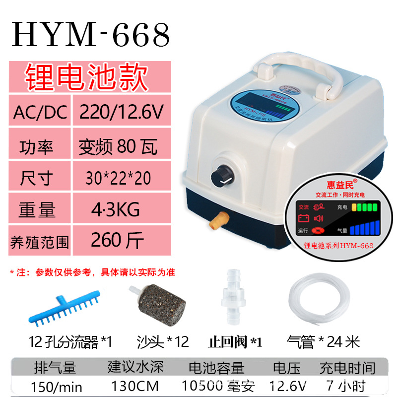 Huiyimin 리튬 배터리 산소 펌프 충전 AC/DC 이중 목적 방수 야외 낚시 산소 펌프 어항 충전 산소스토어 가기