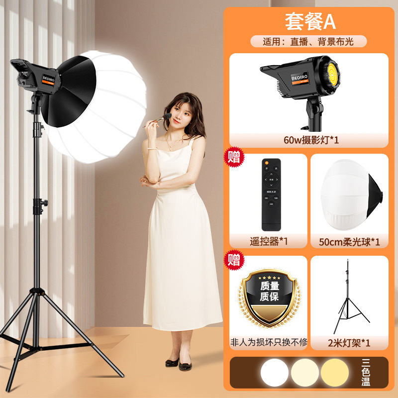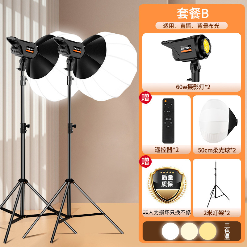 • 60W 3색 + 50 소프트 라이트 볼 + 라이트 스탠드 듀얼 라이트 세트