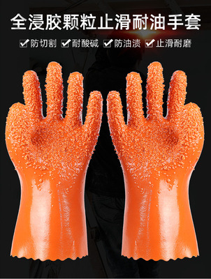 재고 도매 작업 산업 불투과성 노동 보호 장갑 풀 딥 플라스틱 두꺼운 고무 입자 미끄럼 방지 장갑