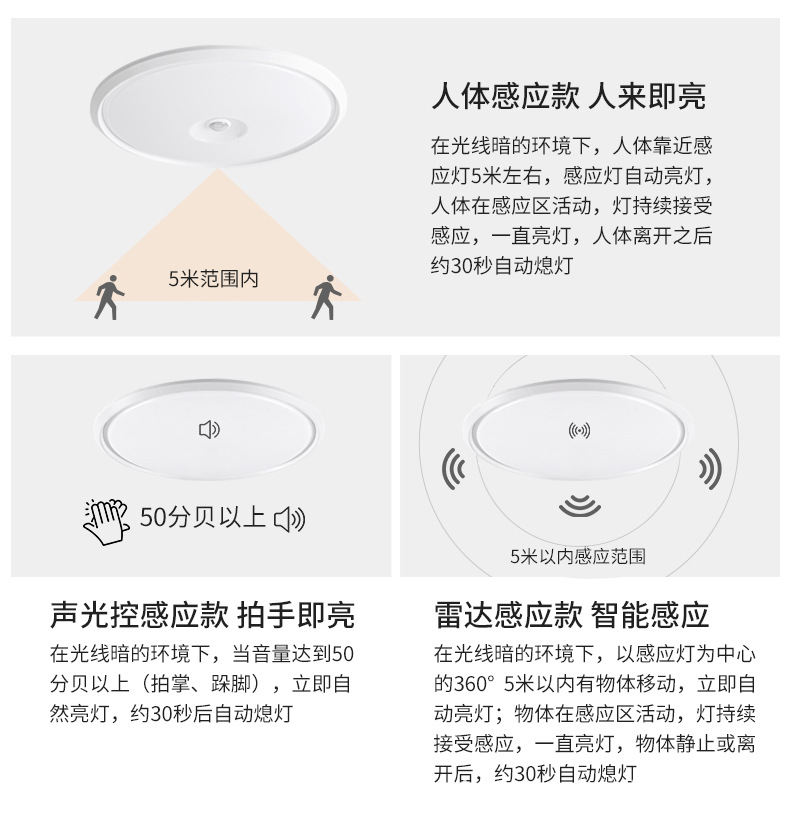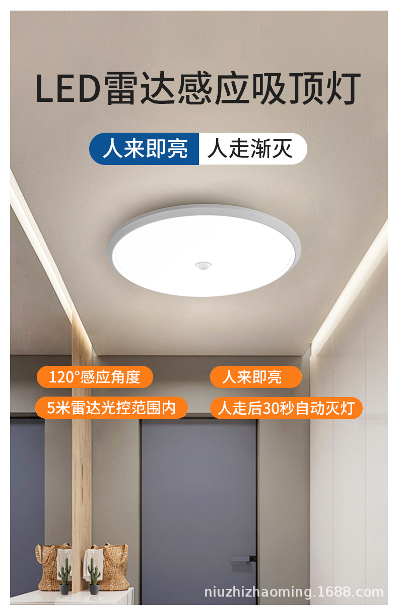 LED 인체 유도 천장 램프 지능형 레이더 초박형 복도 계단 음성 제어 램프 자동 천장 에너지 절약 램프