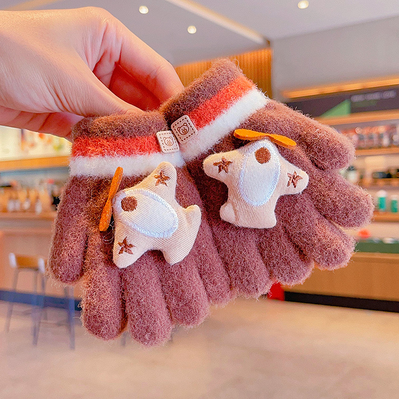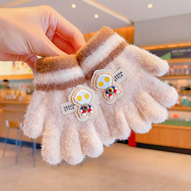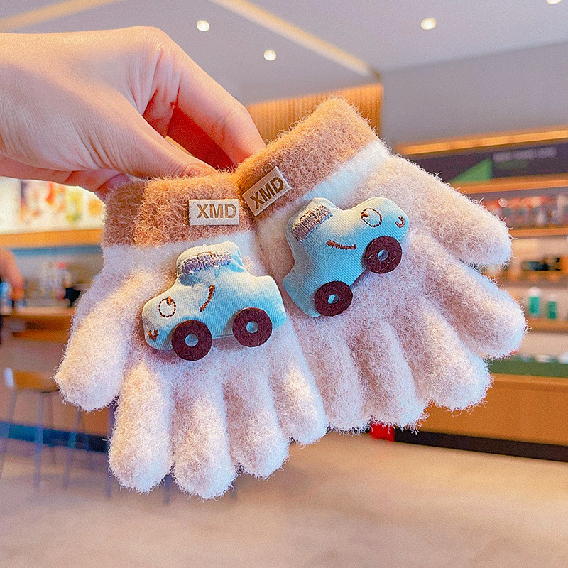 겨울 새로운 아기 귀여운 봉제 따뜻한 아기 장갑 어린이 다섯 손가락 세트 0-3 소년과 소녀 1 세 2 세