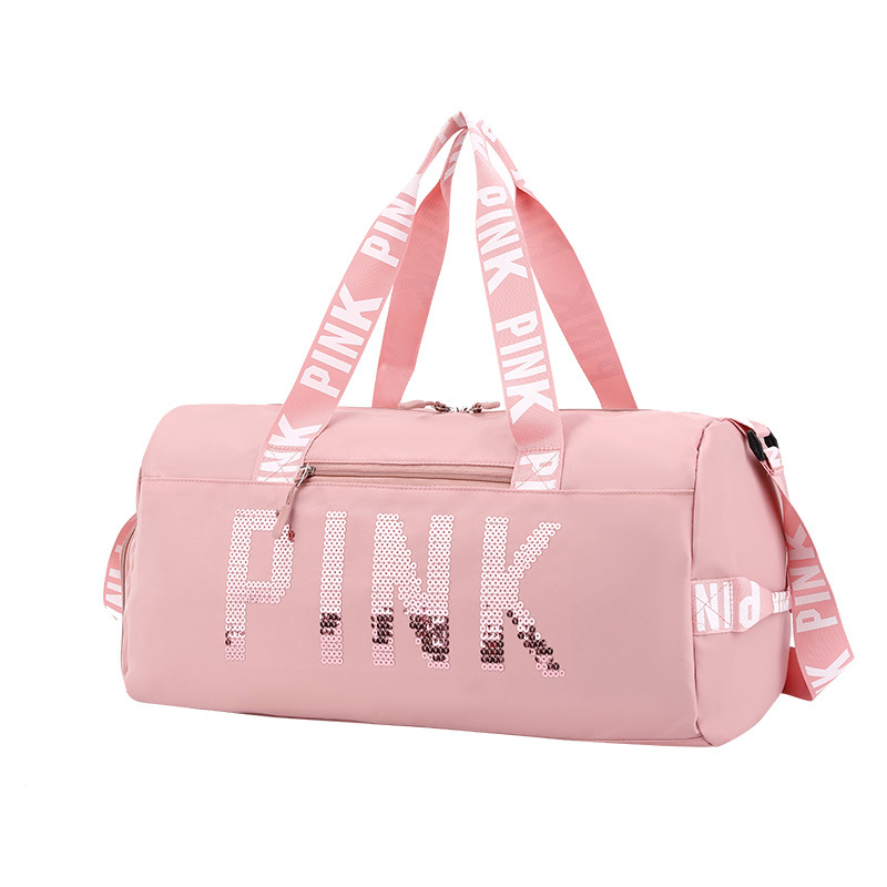 2023 새로운 체육관 가방 신발 창고 건조 및 습식 별도 가방 스포츠 여행 가방 스팽글 핑크 편지 숄더 크로스 바디 백