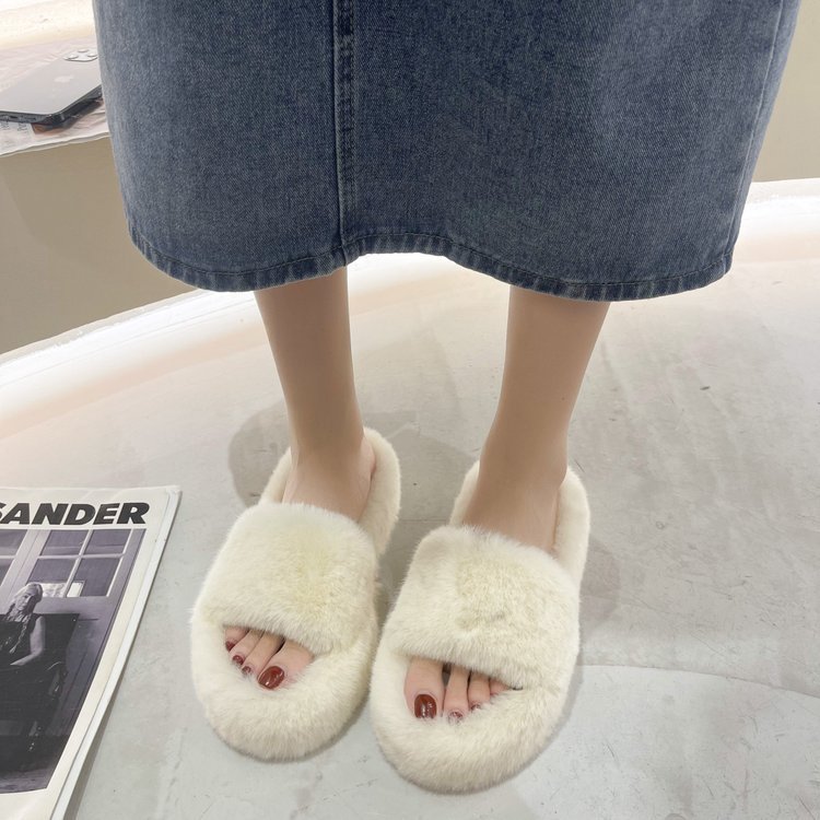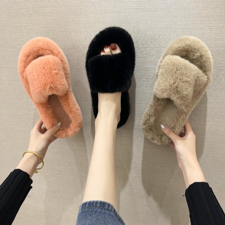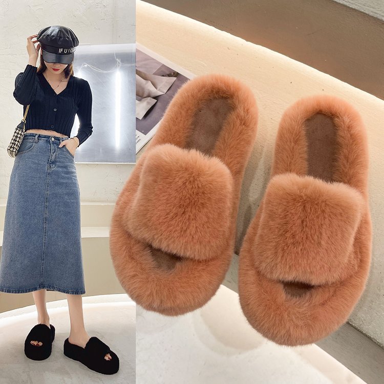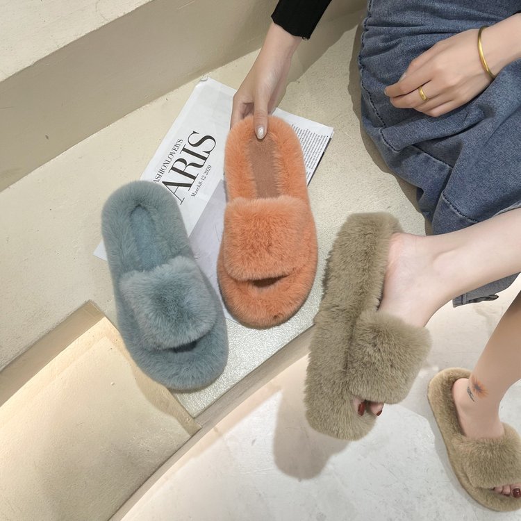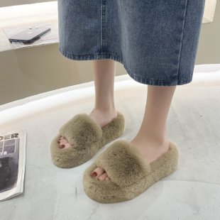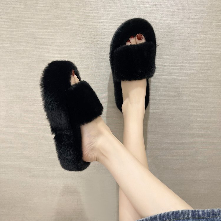 한 단어 마오 마오 슬리퍼 여성 2022 새로운 가을 겨울 대외 무역 플러스 사이즈 5cm 두께 바닥 패션 오픈 토 홈 면 슬리퍼