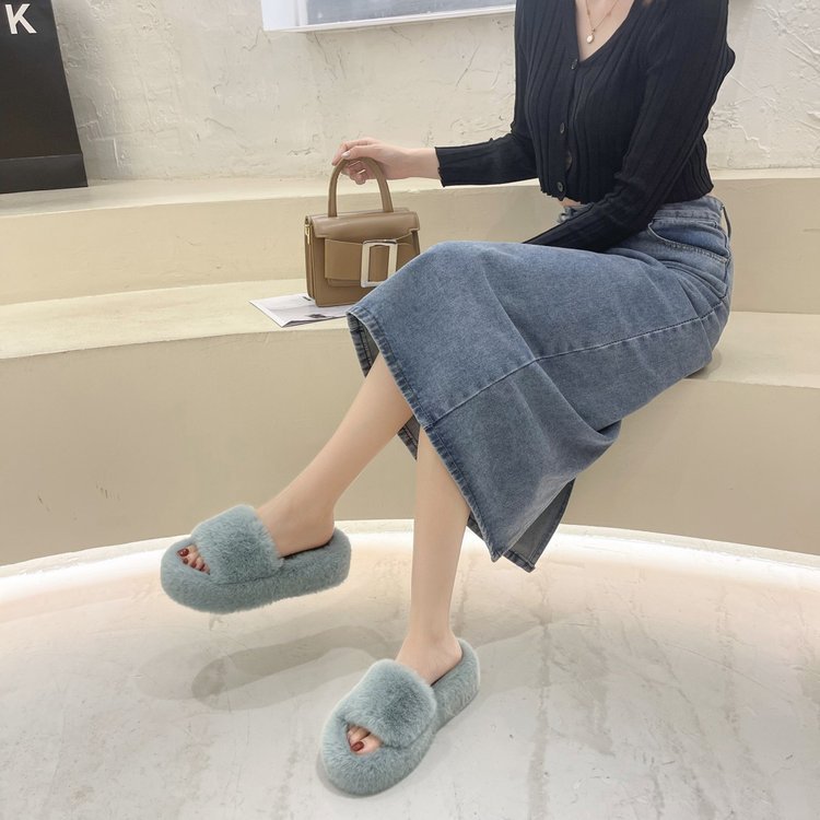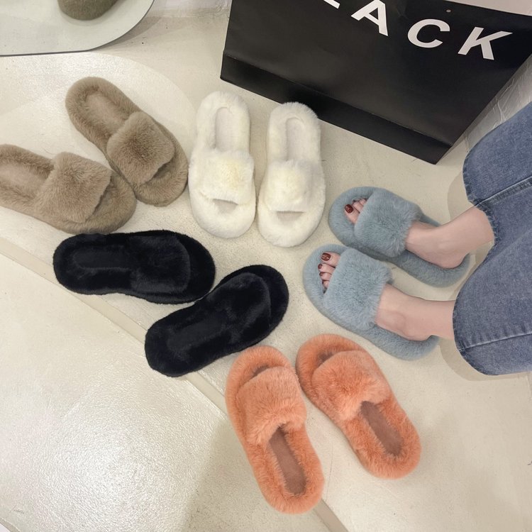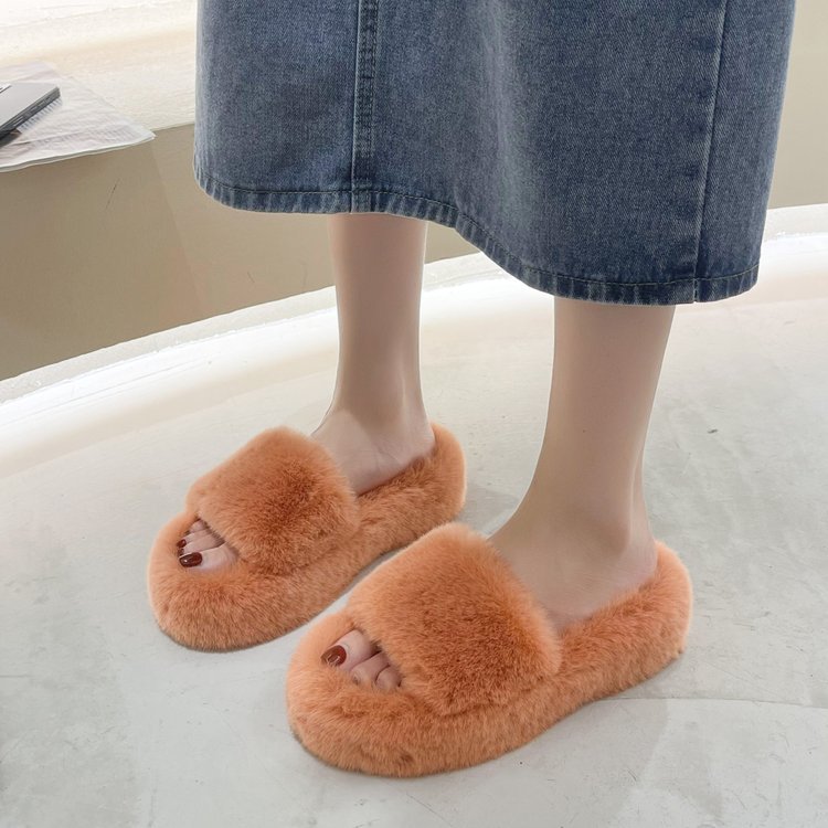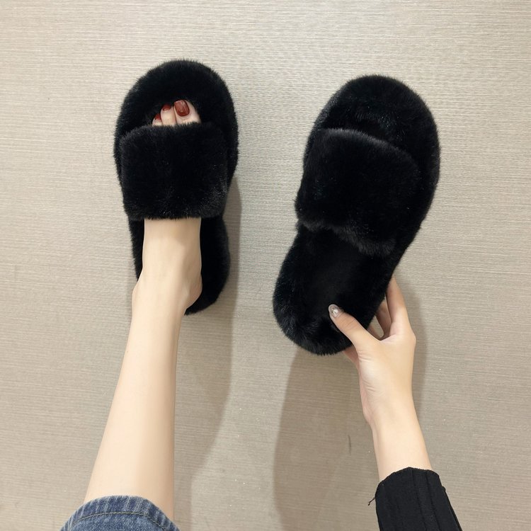한 단어 마오 마오 슬리퍼 여성 2022 새로운 가을 겨울 대외 무역 플러스 사이즈 5cm 두께 바닥 패션 오픈 토 홈 면 슬리퍼스토어 가기