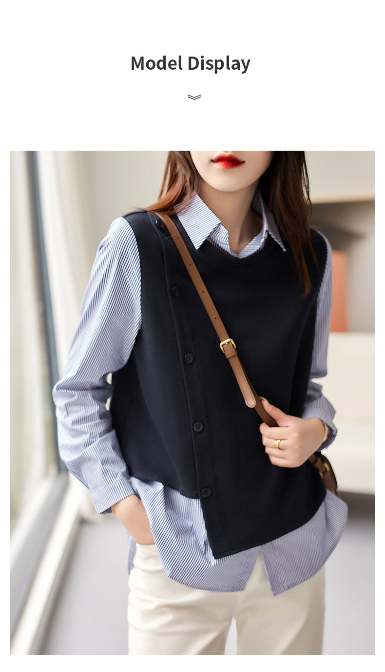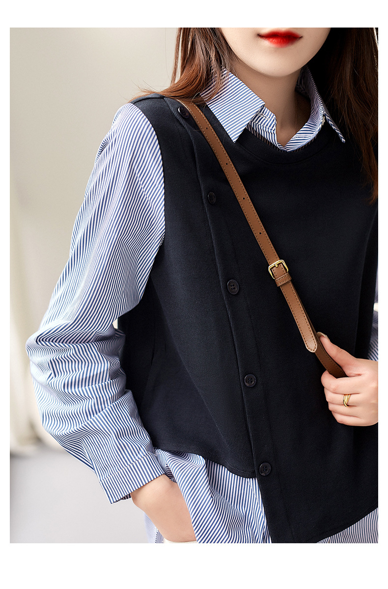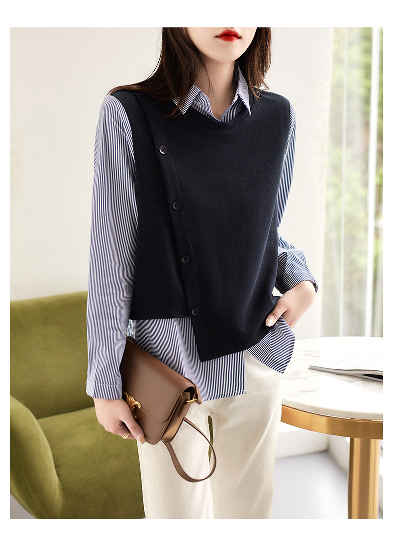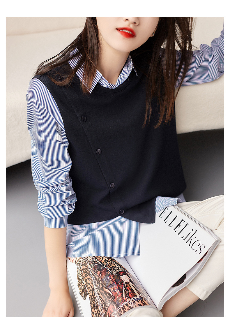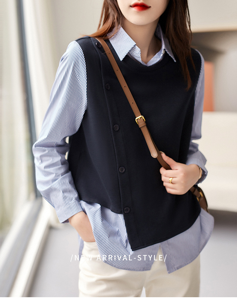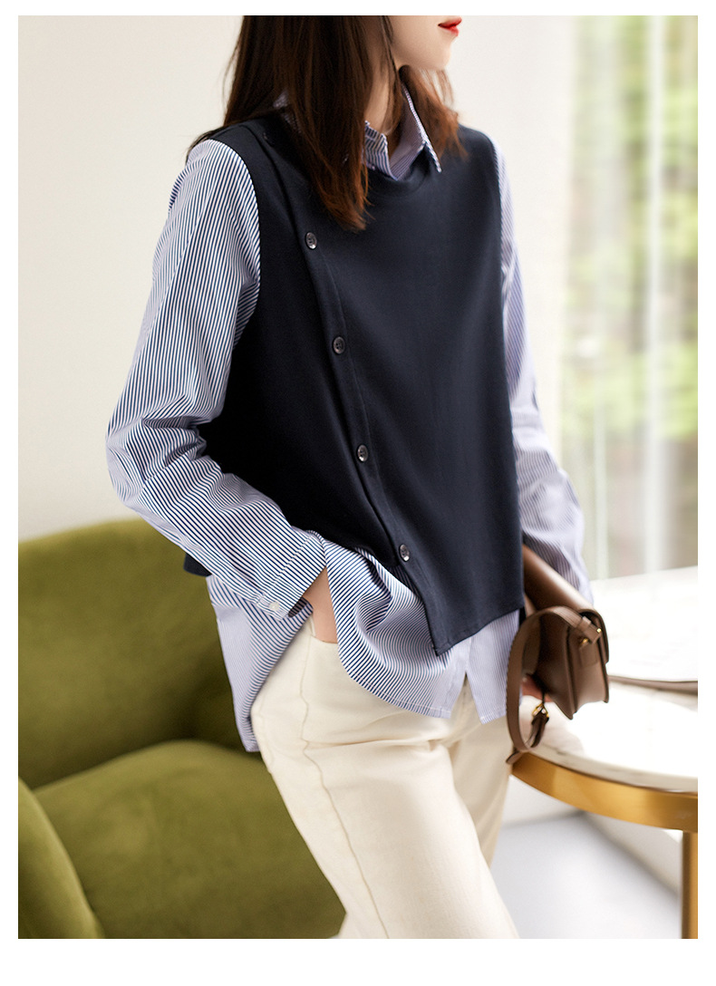 공장 직접 니트 스티칭 가짜 두 줄무늬 셔츠 여성의 긴 소매 새로운 느슨한 슬림 예술적 기질 탑