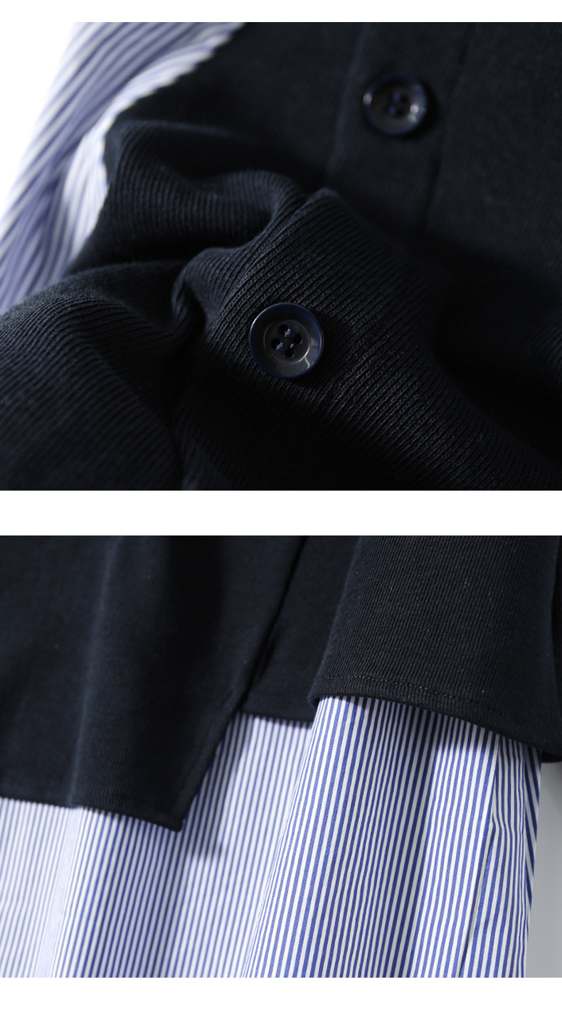 공장 직접 니트 스티칭 가짜 두 줄무늬 셔츠 여성의 긴 소매 새로운 느슨한 슬림 예술적 기질 탑스토어 가기