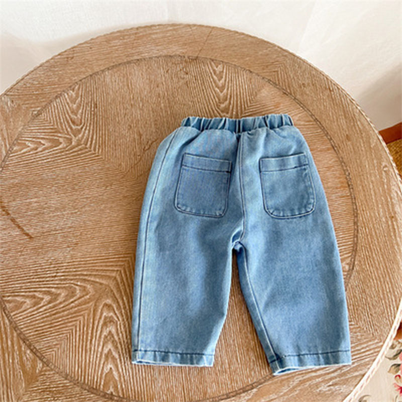 봄과 가을 아기 소년과 소녀 긴 소매 데님 셔츠 코트 바지 투피스 세트 어린이 서양 패션 세트