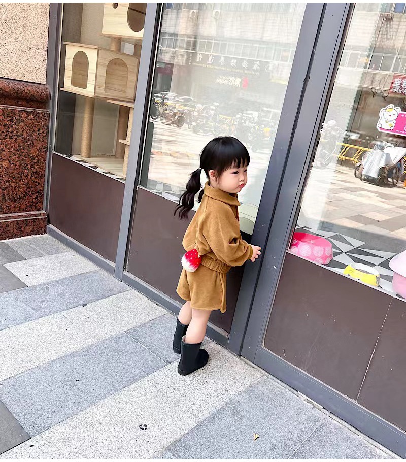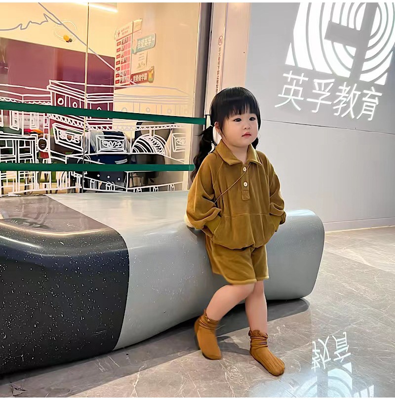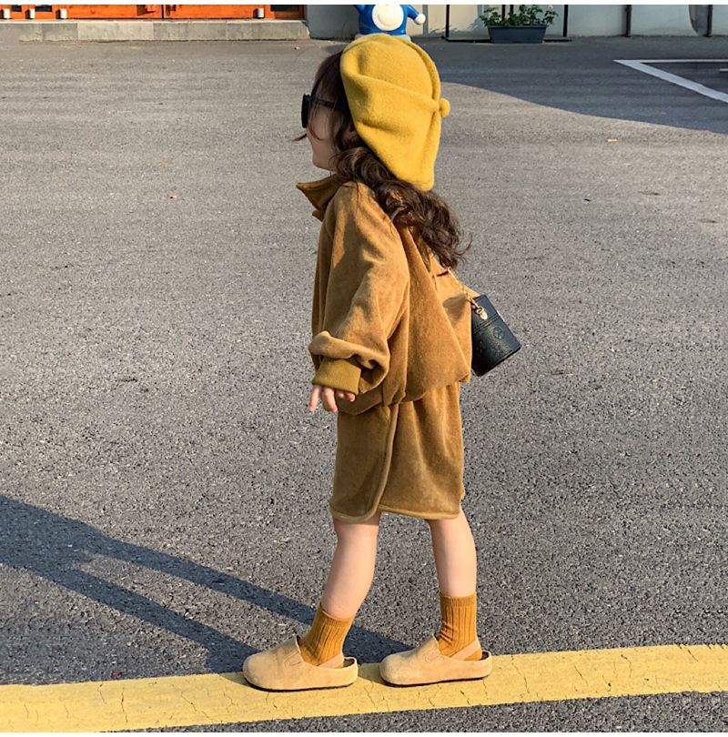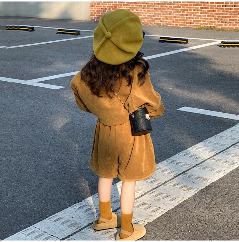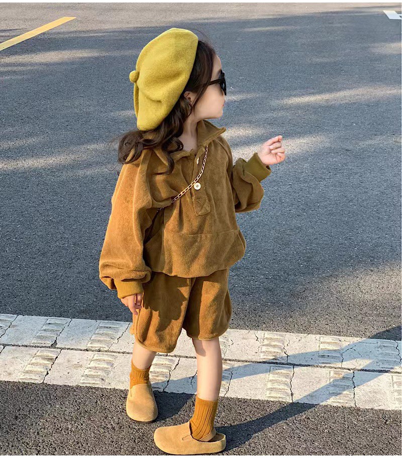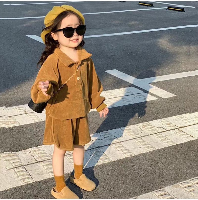 소녀 외국 스타일 프라이드 스트리트 세트 2022 가을과 겨울 부드러운 수건 원단 긴 소매 폴로 칼라 투피스 세트의 새로운 한국어 버전