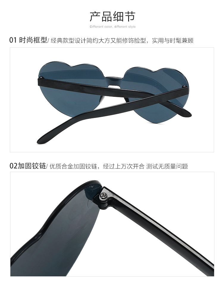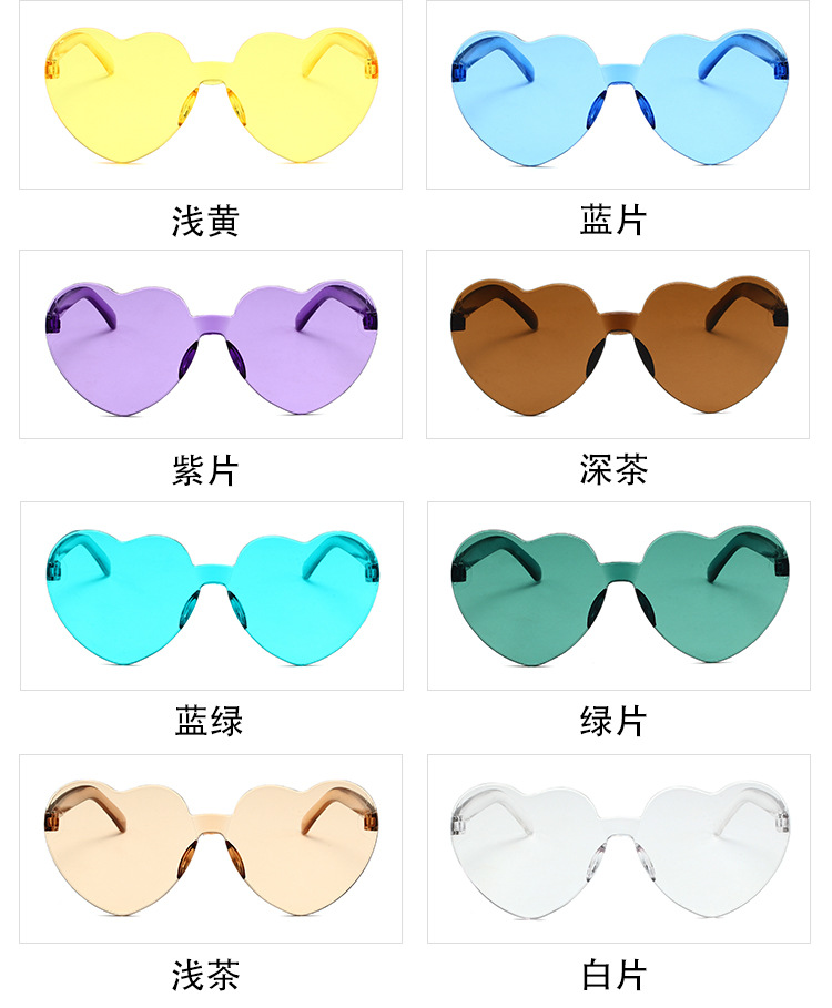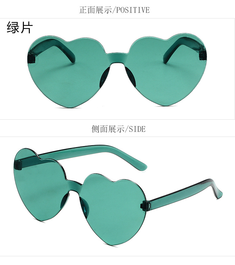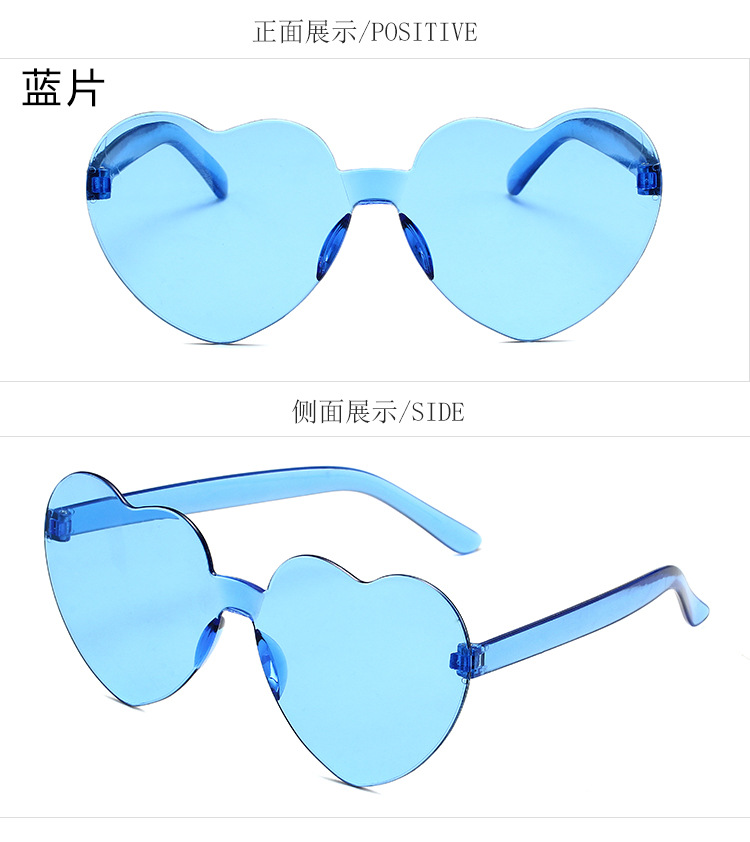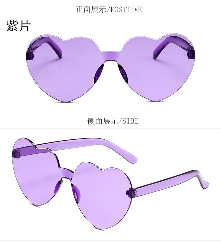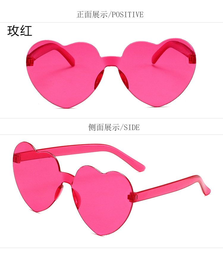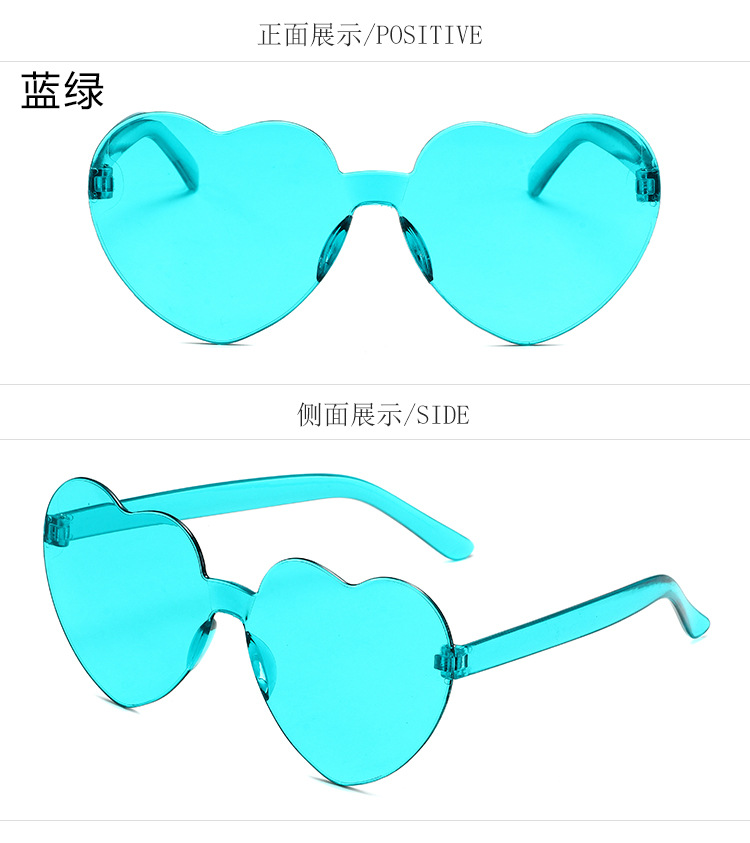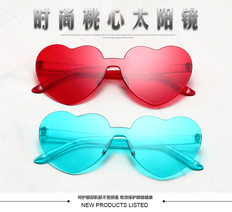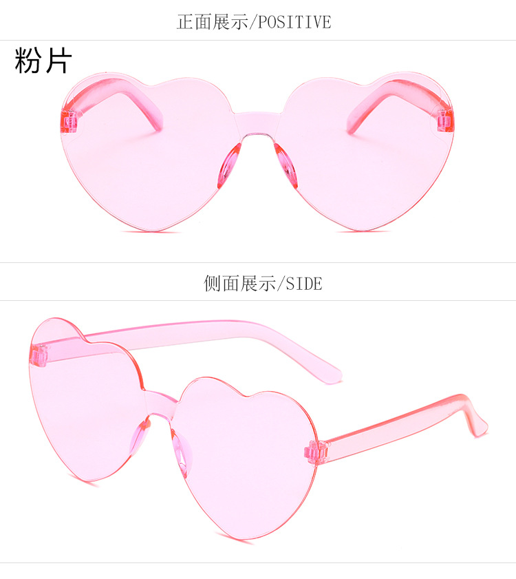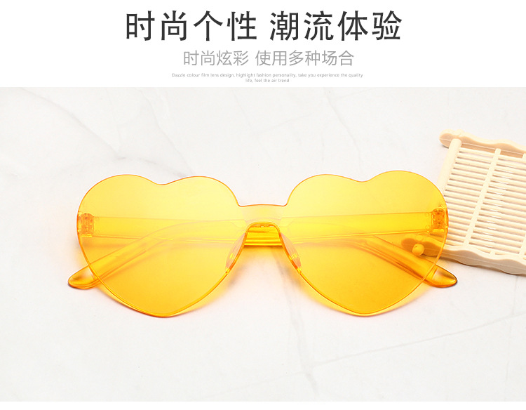 투명 젤리 컬러 러브 선글라스 남성용 및 여성용 복숭아 하트 선글라스 크로스 보더 유럽과 미국 하트 모양의 원피스 선글라스