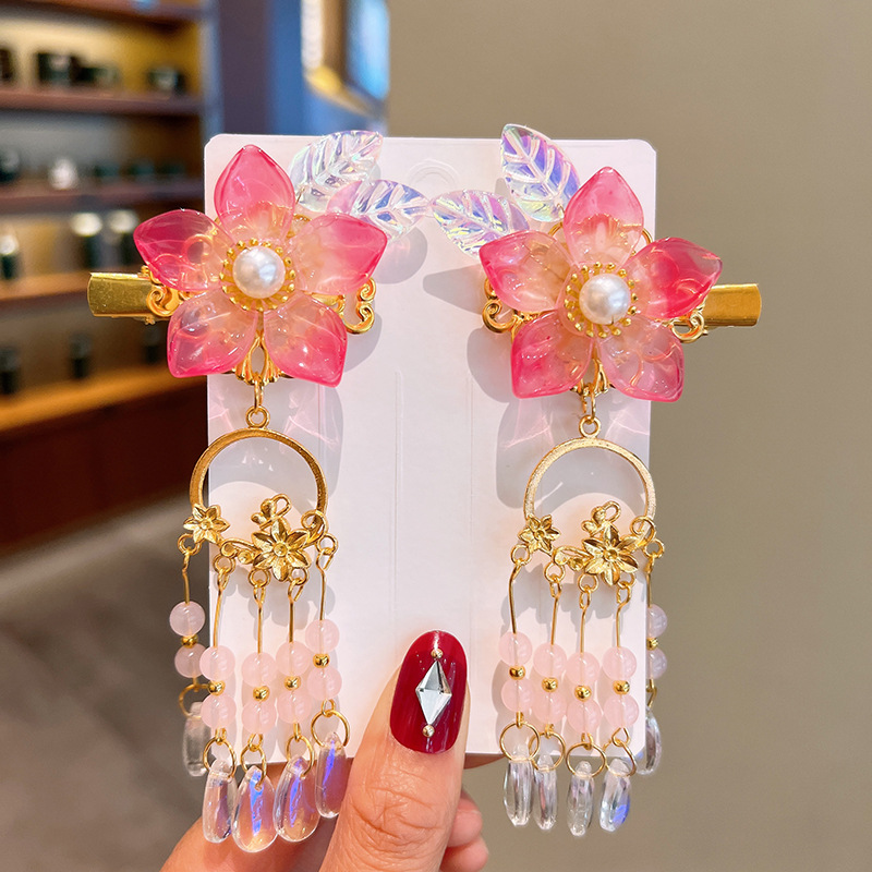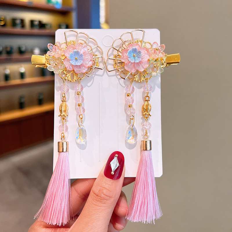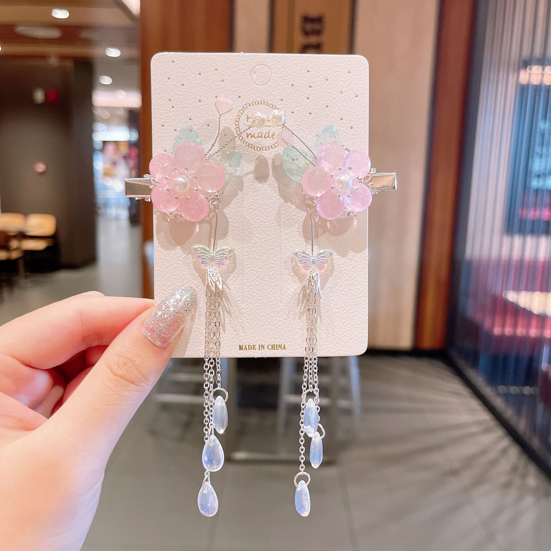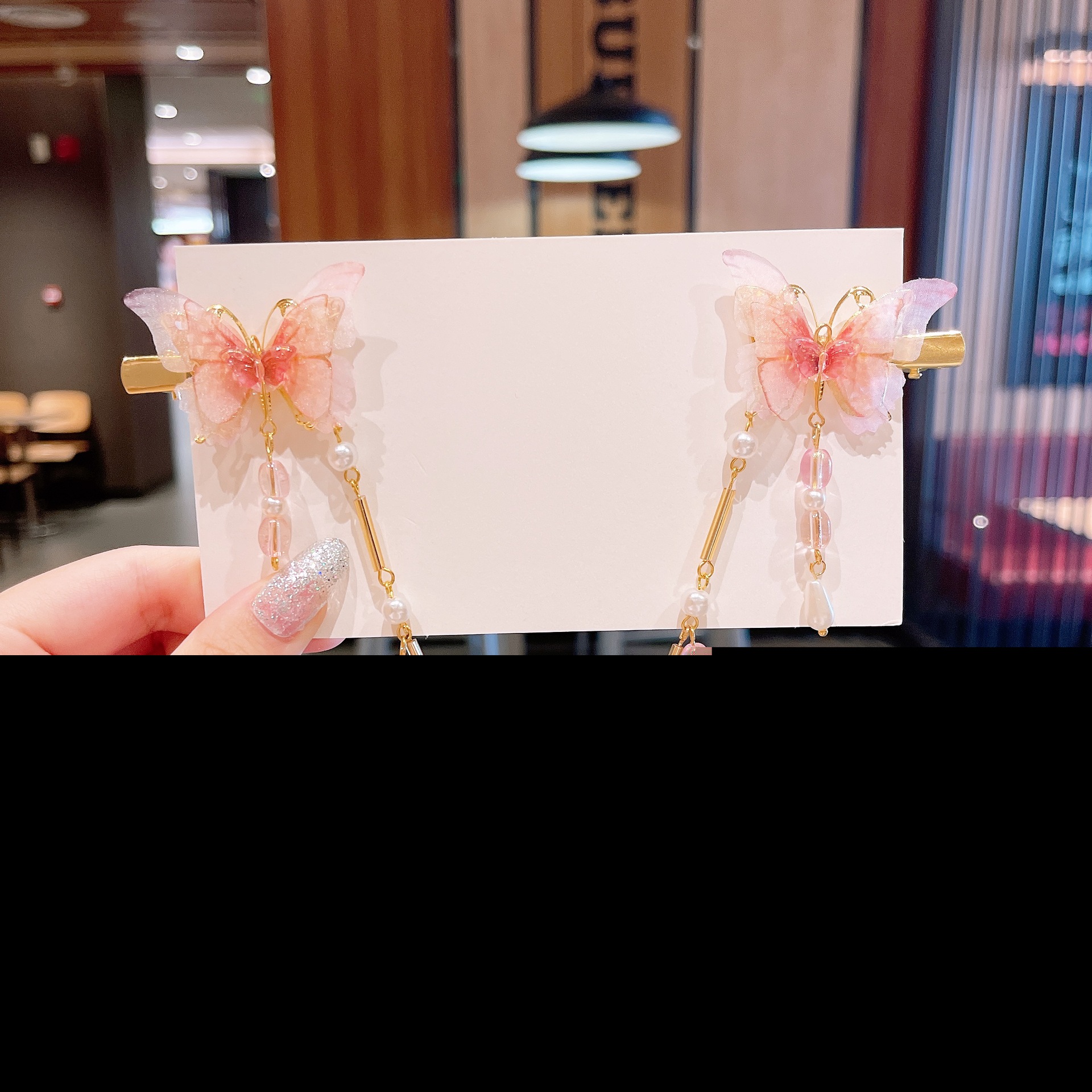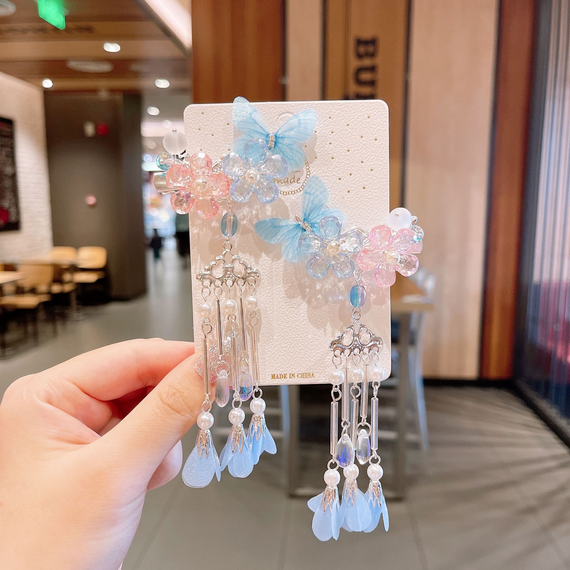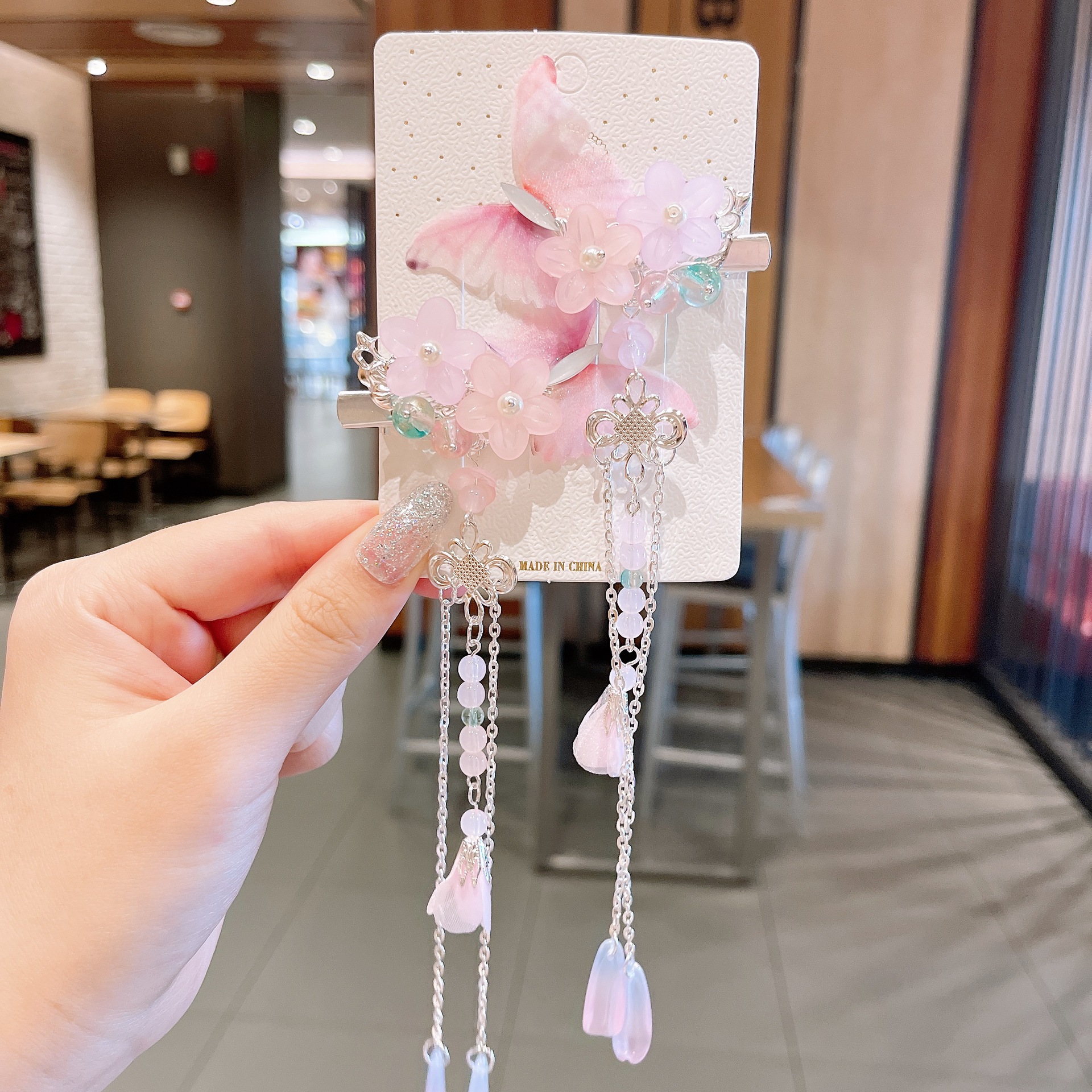 고대 의상 어린이 Hanfu 머리핀 모자 여아 사이버 연예인 산책 골동품 나비 머리핀 술 슈퍼 요정 리본 클립